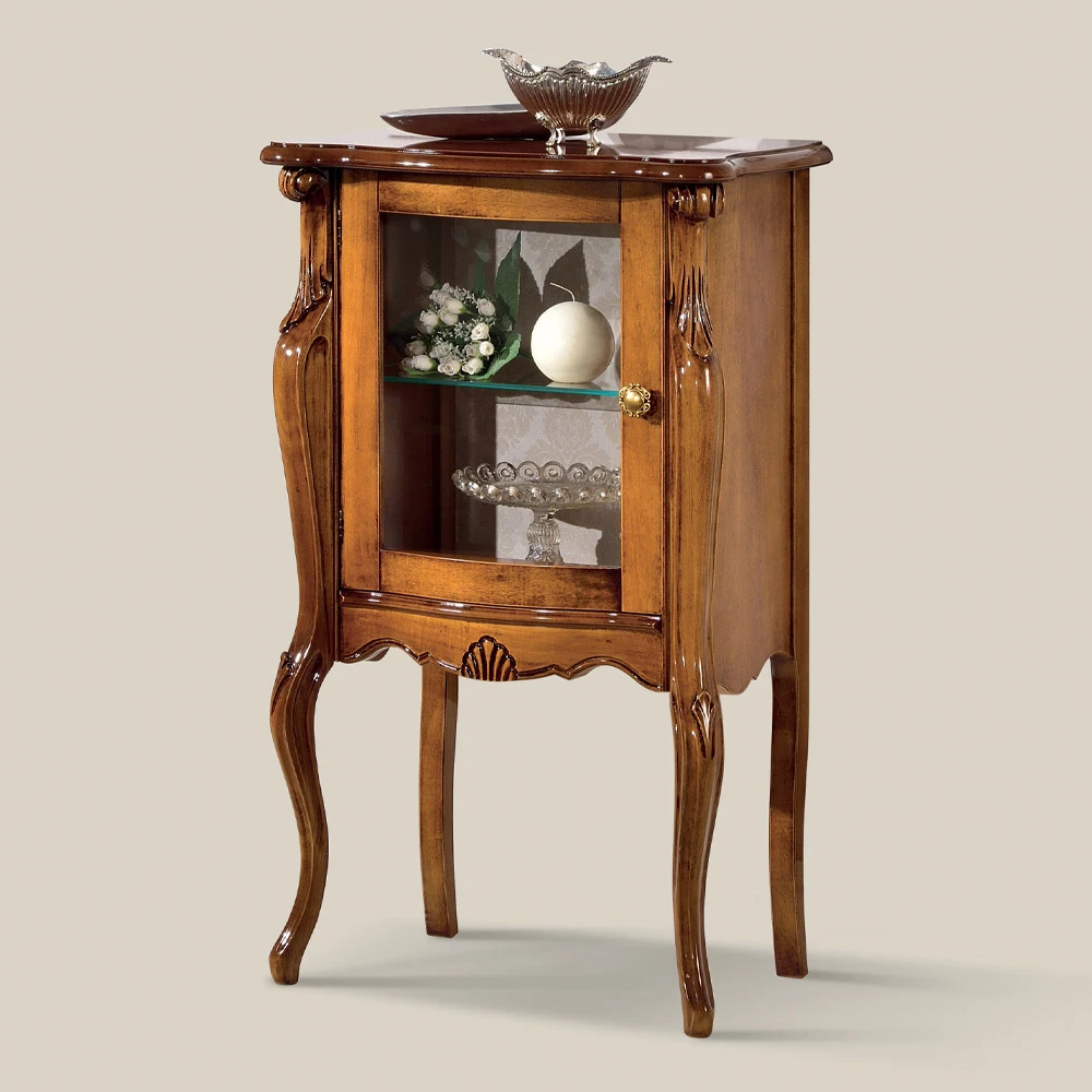 Woonkamermeubels in klassieke stijl gemaakt van hout en verkrijgbaar in de versie met glazen of houten deur. Perfect voor het decoreren van uw woonkamer, u kunt kiezen tussen Bassano walnoot of wit hout .