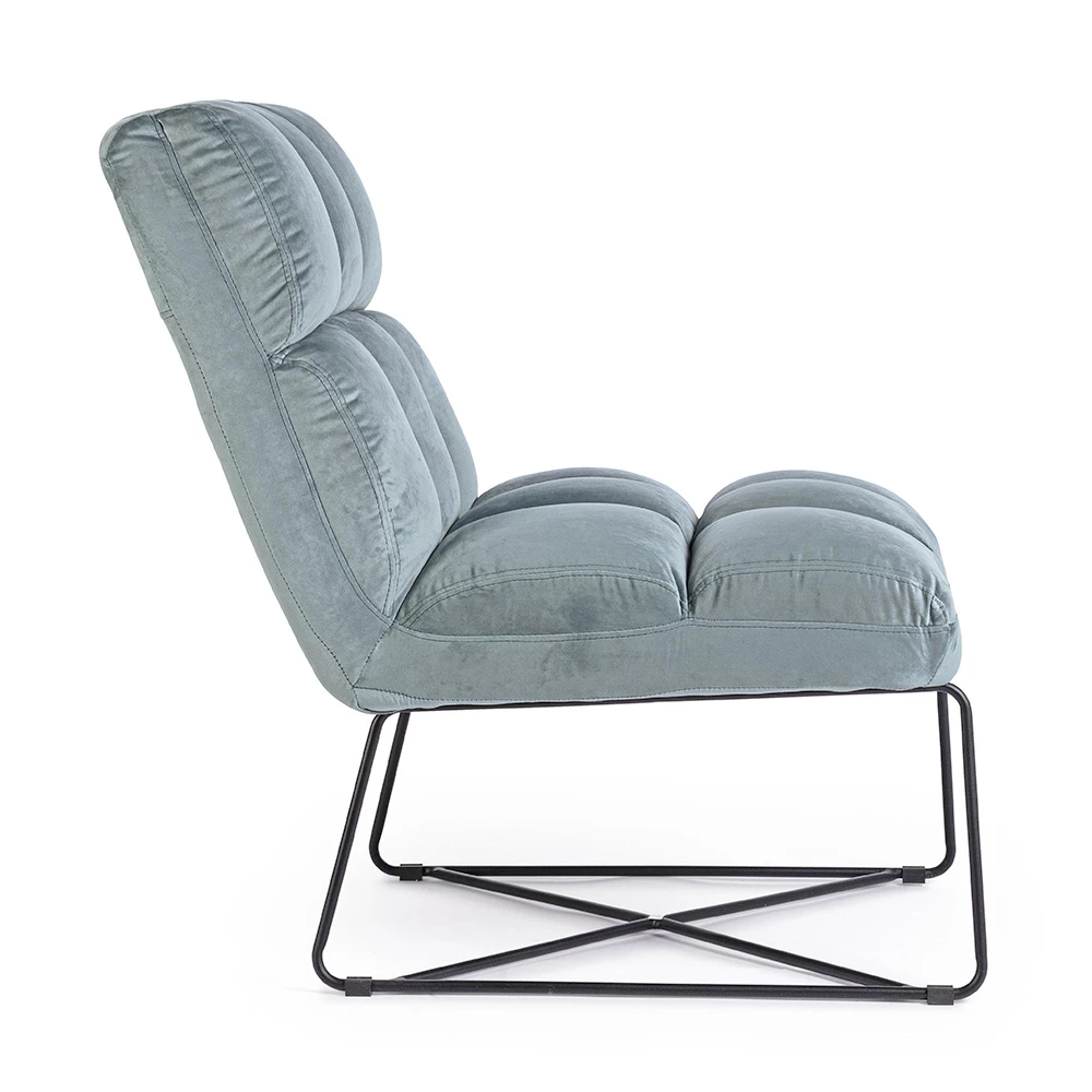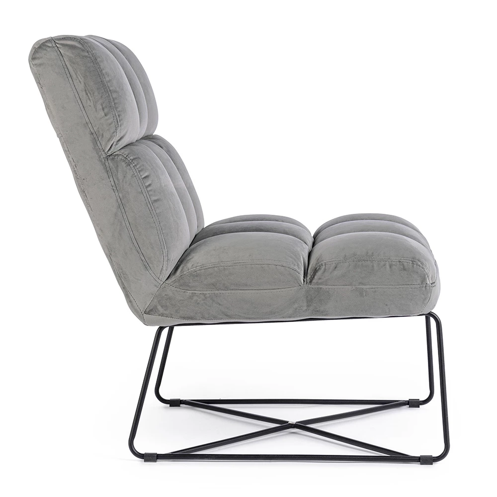 Klassieke fauteuil in stalen buis en gestoffeerde zitting in 2-delig fluweel.