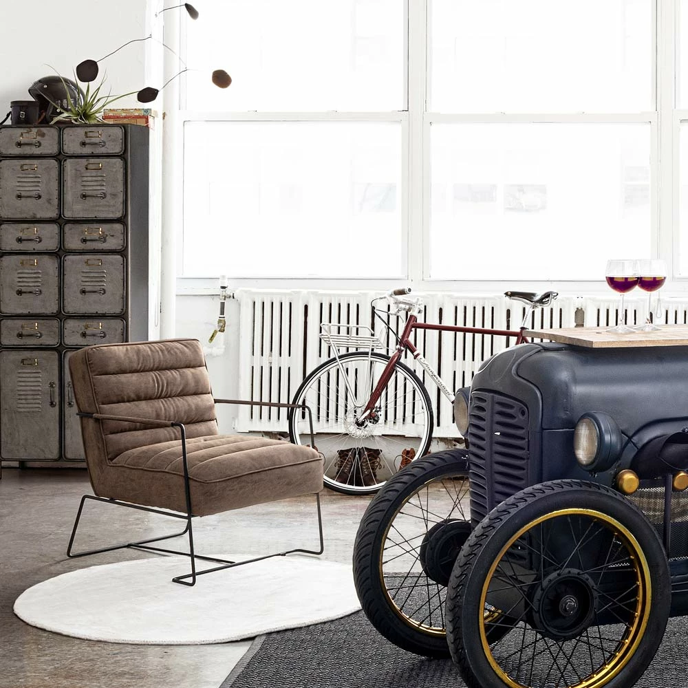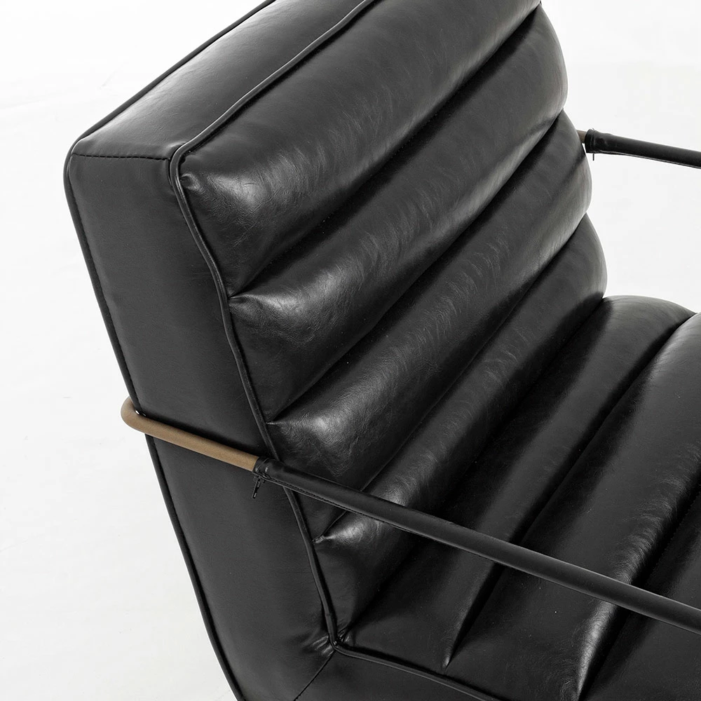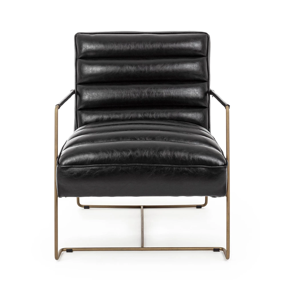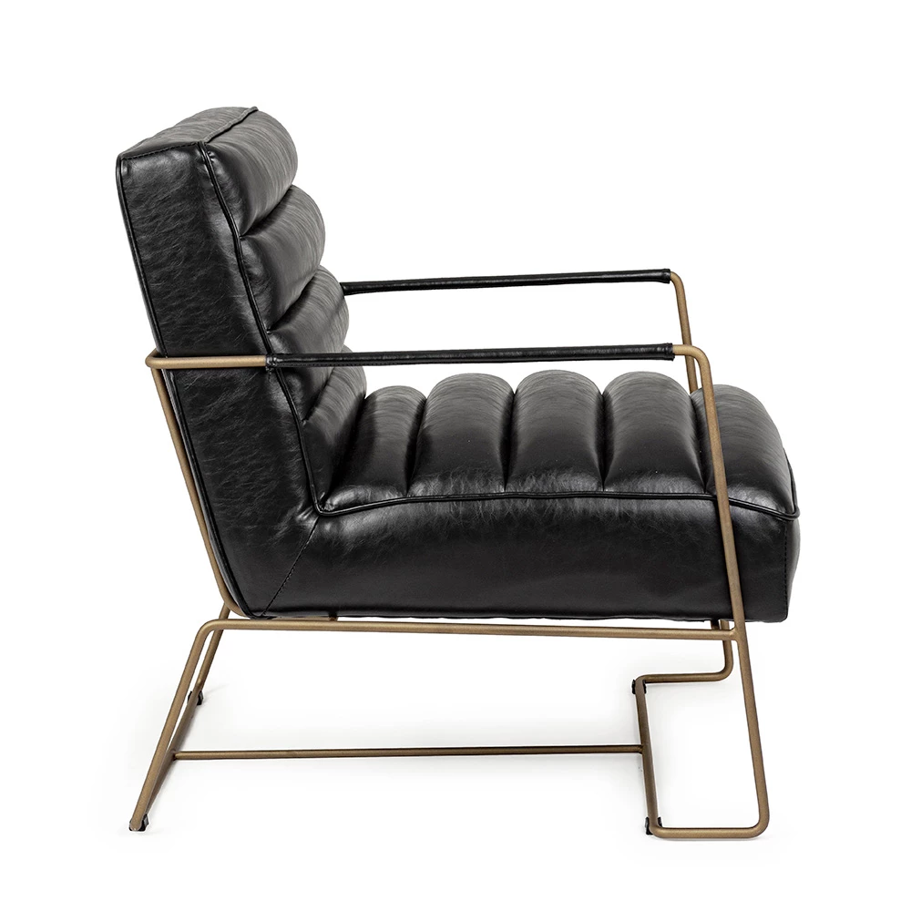 Klassieke design fauteuil in staal en zitting in zwart of bruin eco-leer.
