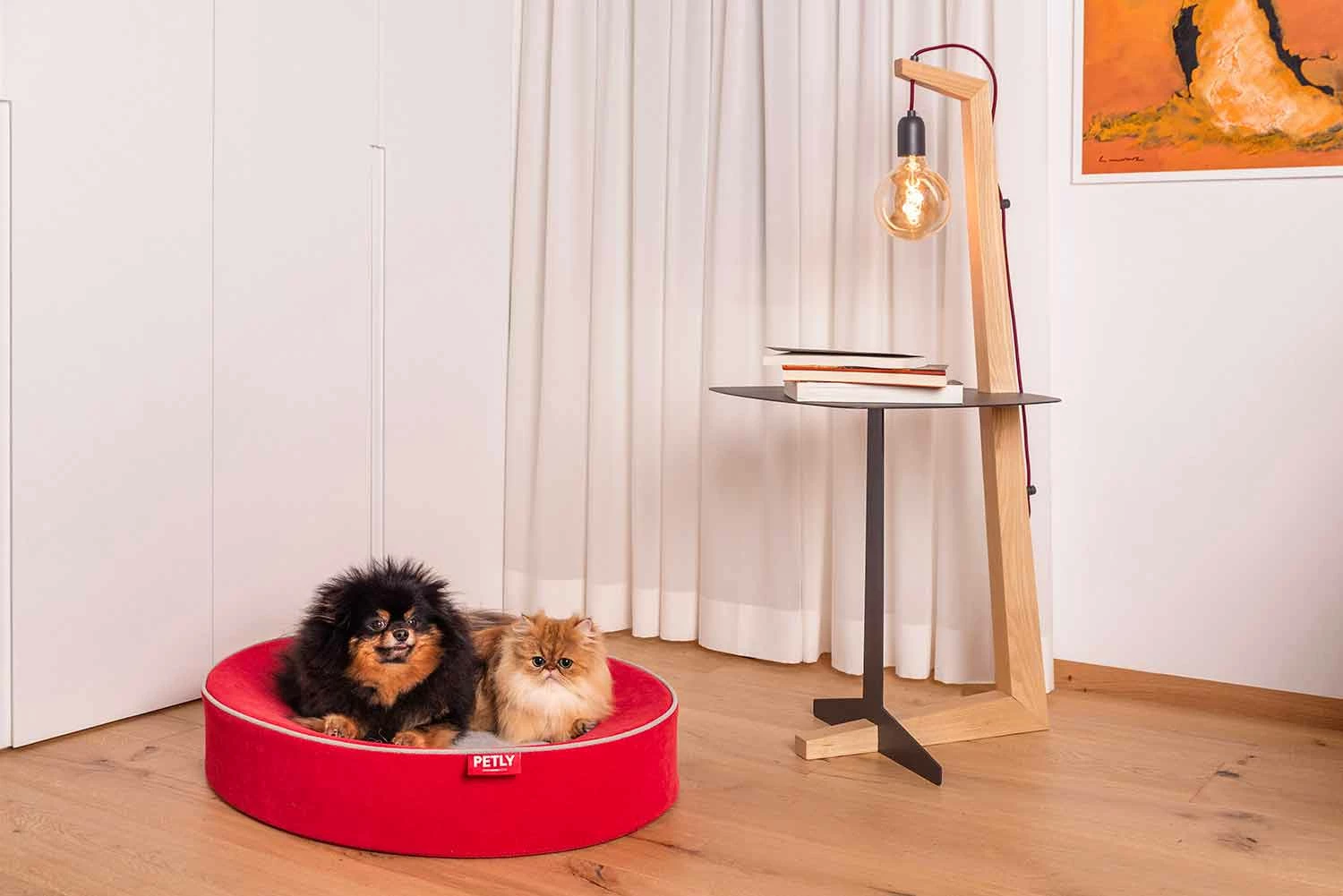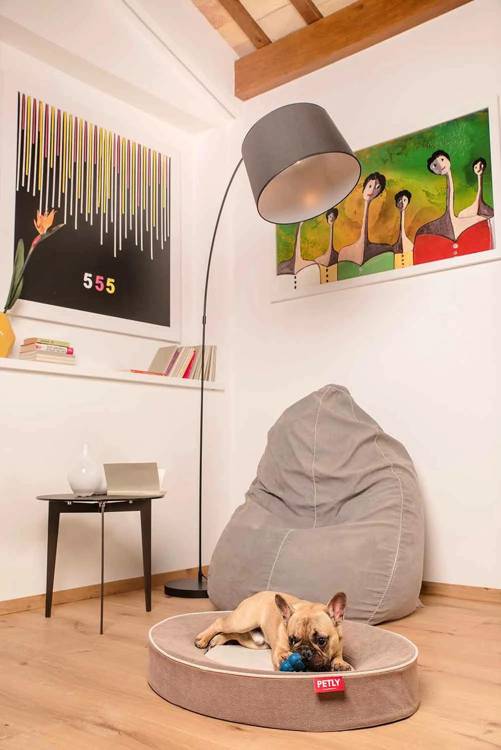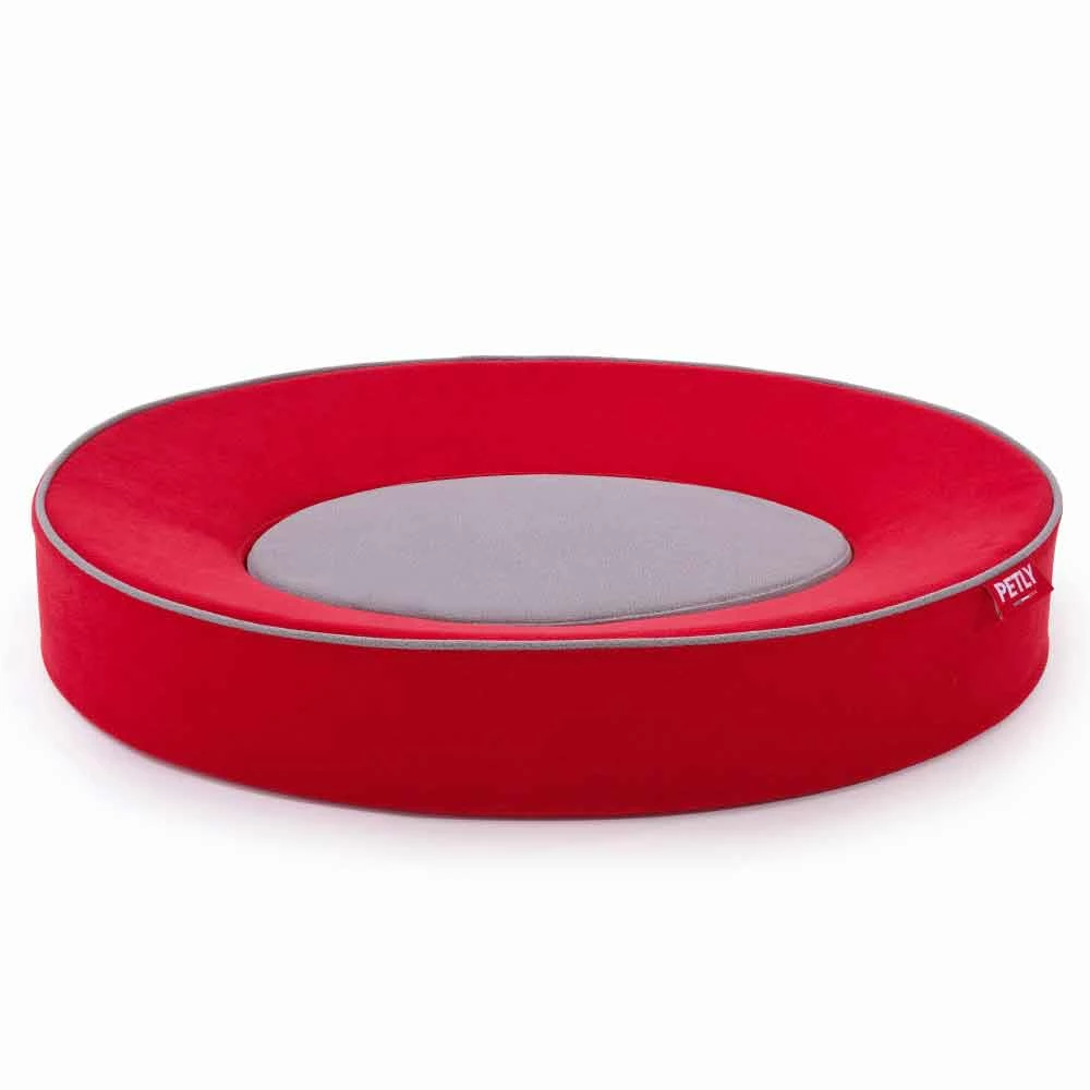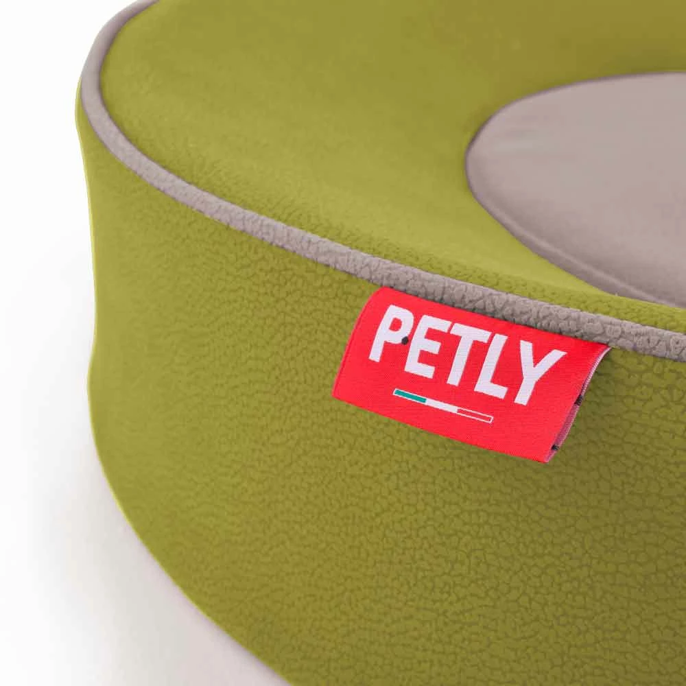 Zacht hondenkussen voor gebruik binnenshuis, bolle vorm naar het midden toe, uitneembaar en Made in Italy.