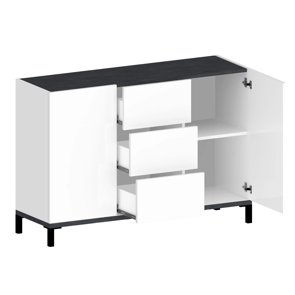- L 120.1 x D 40.1 x H 80 cm – 2 deuren, 4 vakken en 3 schuifladen;