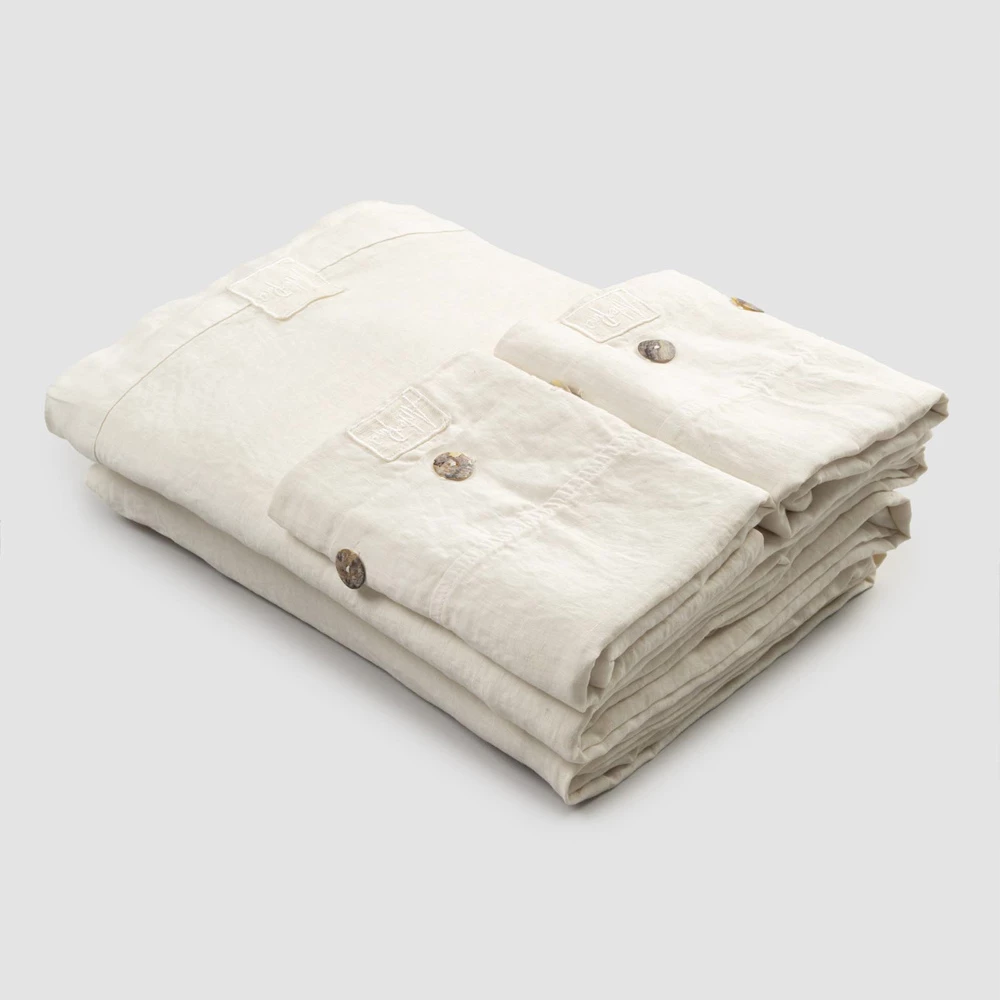 Dubbele linnen set van linnen met parelmoeren knopen, luxe made in Italy.