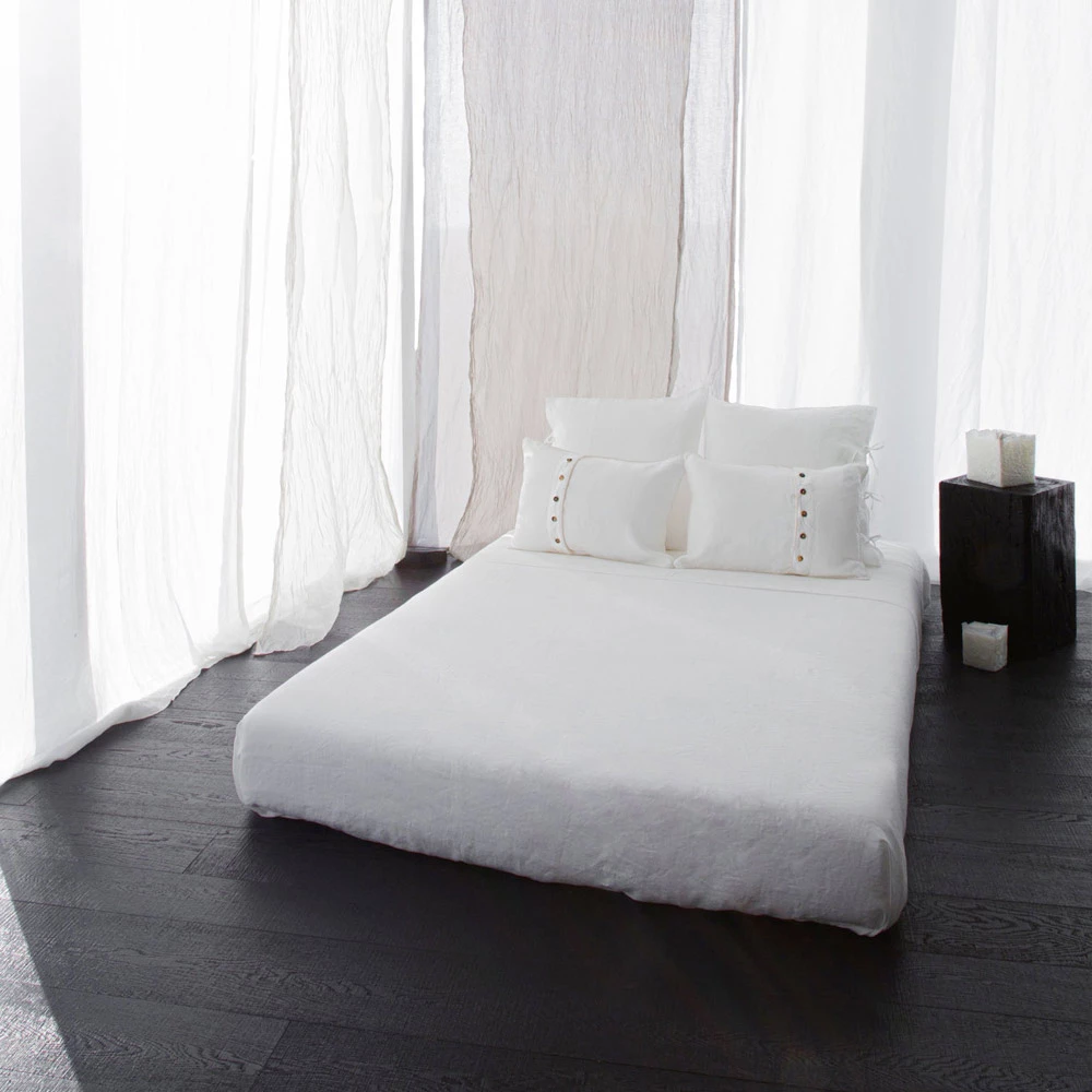 Zo ontstaat door de aandacht voor detail en een authentiek design dat verwijst naar de essentie van schoonheid, een authentiek en ambachtelijk product , van de hoogste kwaliteit voor de geselecteerde grondstoffen, zoals het puurste linnen en het zachtste katoen. De natuurlijke imperfectie van het materiaal duidt dus op de waarde van eenvoud , omsloten door een elegant en delicaat vakmanschap voor een sublieme en suggestieve zintuiglijke ervaring.