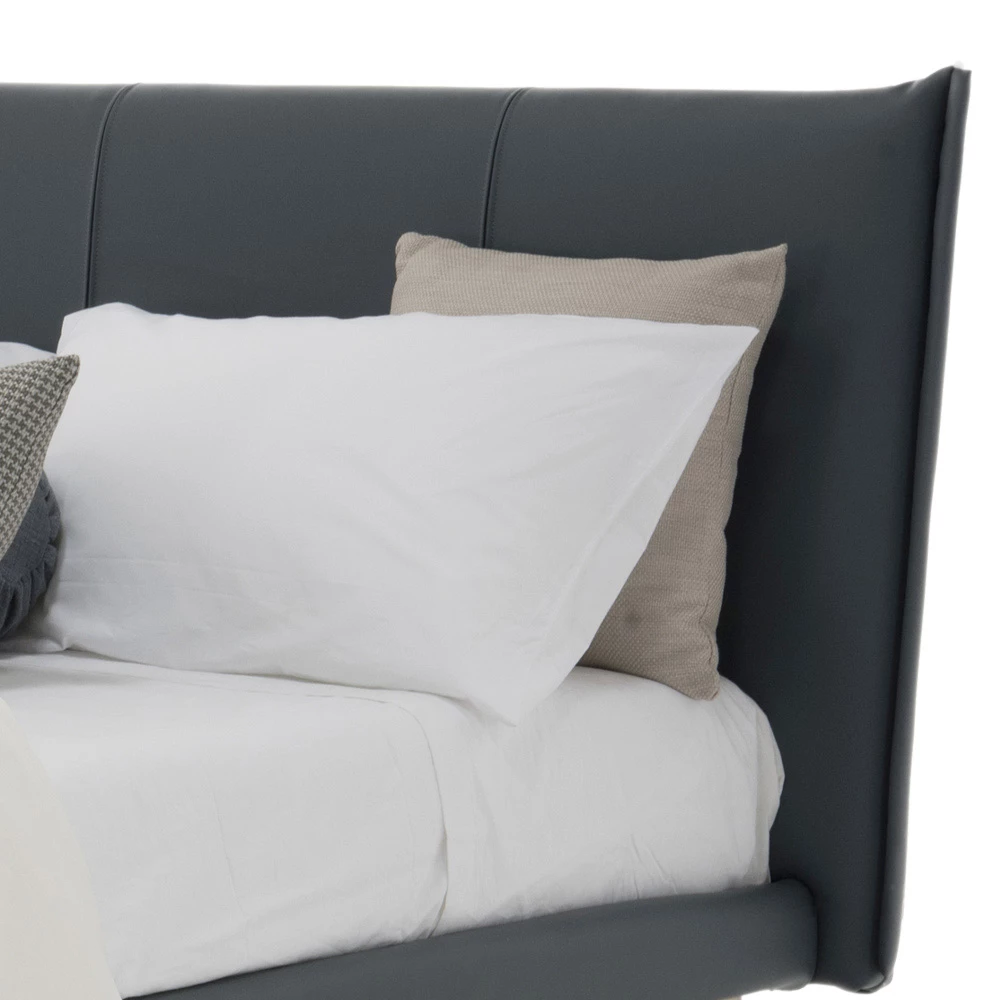 Aan de zijkanten van het hoofdeinde zitten frappe en in het midden van de naden die het volume en zachtheid geven; het hoofdbord is niet afneembaar . Het rechte bedframe is 27 cm hoog en is afneembaar . De poten zijn van hout en 210 mm hoog.