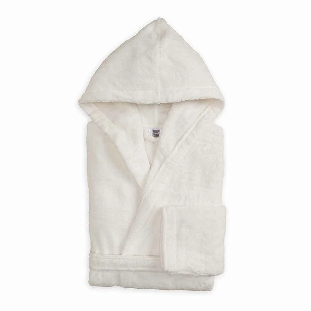 Badjas met capuchon in verschillende kleuren katoenen badstof, ontworpen in Italië.