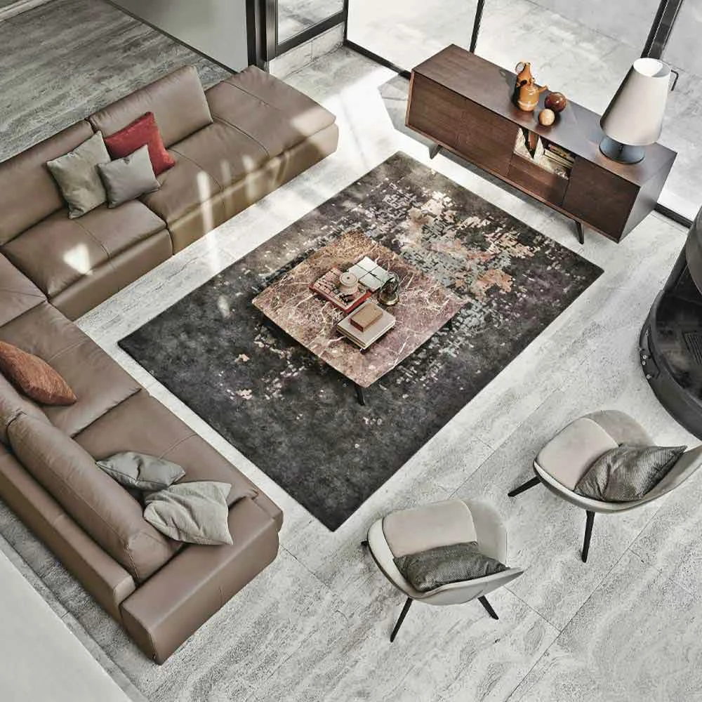 Elegant en exclusief rechthoekig woonkamertapijt gemaakt in Italië van wol , katoen en viscose . Een origineel canvas dat wordt gekenmerkt door discrete kleurnuances die worden gecombineerd om originele en creatieve inrichtingsoplossingen tot leven te brengen, maar tegelijkertijd sober en bijzonder elegant. De twee beschikbare maten passen perfect bij grote woonruimtes om lege ruimtes op te vullen, waardoor de esthetiek van de omgeving radicaal verandert en een warme en gastvrije sfeer wordt gecreëerd, ideaal voor verfijnde woonkamers.