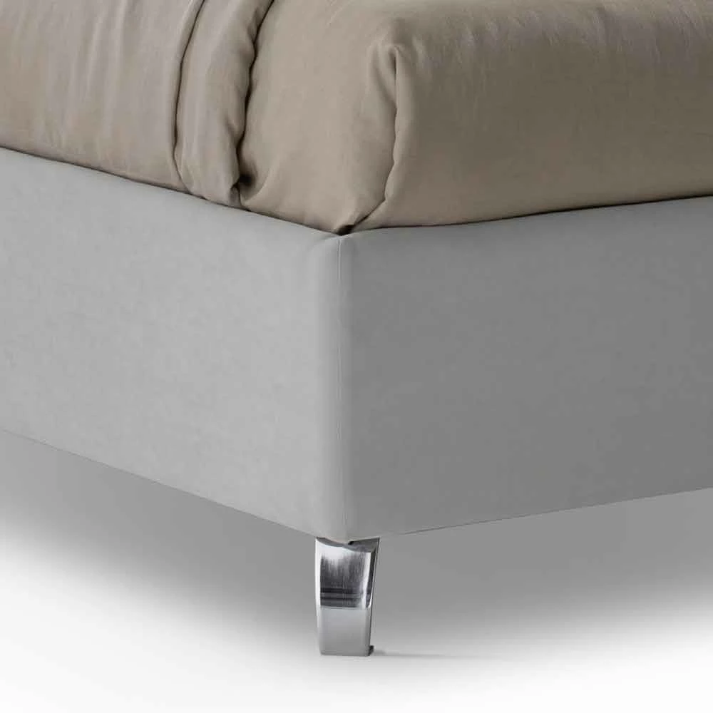 Tweepersoonsbed met modern design container in tweekleurige stof, handgemaakt in Italië.