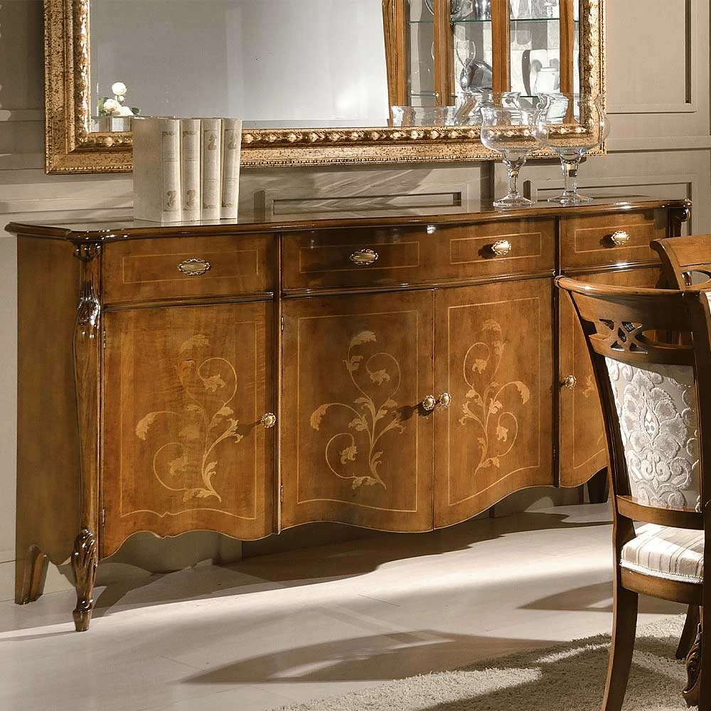 Luxe woonkamer dressoir in klassiek Made in Italy hout.