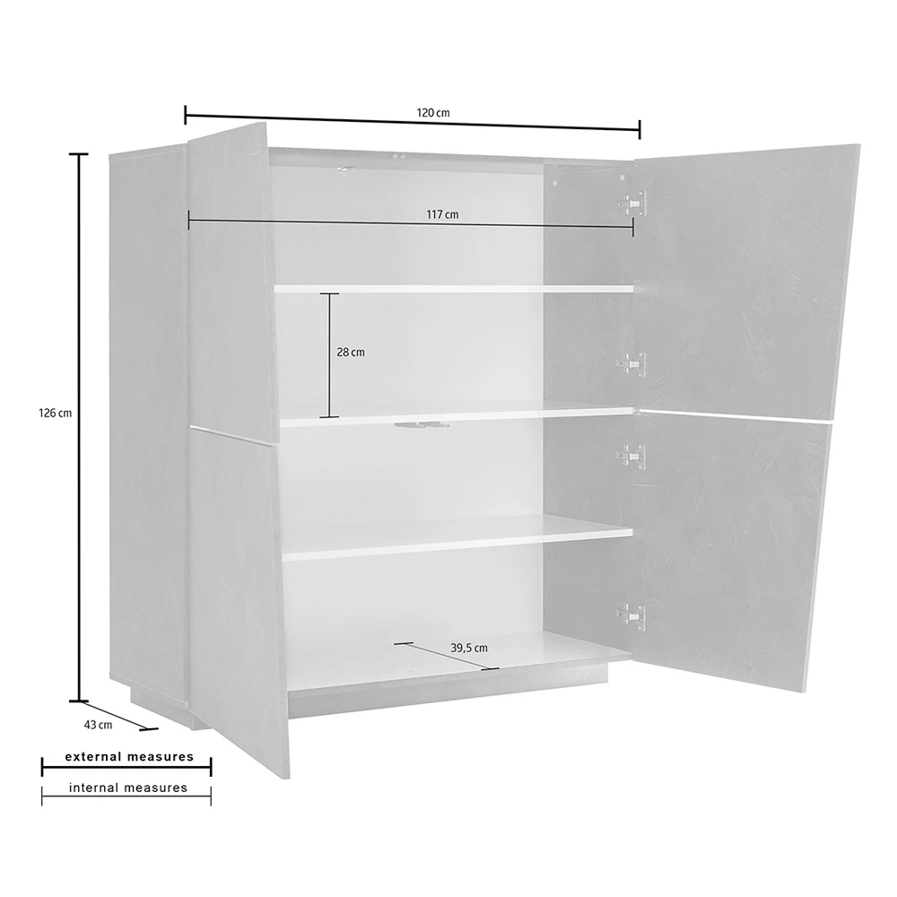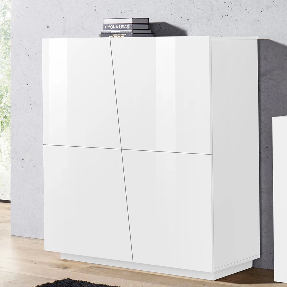 Het dressoir is opgebouwd uit 4 scharnierende deuren , die 4 opbergvakken sluiten, die veel opbergruimte garanderen. Het is gemaakt van melamine en 100% Made in Italy . Dit product leent zich om de inrichting van elke woonkamer te voltooien dankzij de eenvoudige en elegante afwerkingen die de kamer een uniek en onvergetelijk tintje geven. Het gebruikte materiaal garandeert kwaliteit en duurzaamheid, zelfs in de loop van de tijd.