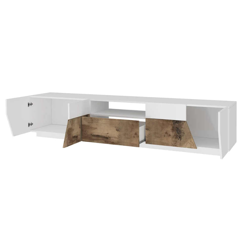 Dit tv-meubel is in staat om een prachtig centraal punt in de woonkamer te creëren waardoor het woongedeelte netter en lichter wordt. Het is een meubel met een minimaal ontwerp dat een elegante esthetiek combineert met een brede bruikbaarheid en dankzij zijn veelzijdigheid past het perfect in elke woonkamer en creëert het een perfecte harmonie met de omringende elementen.