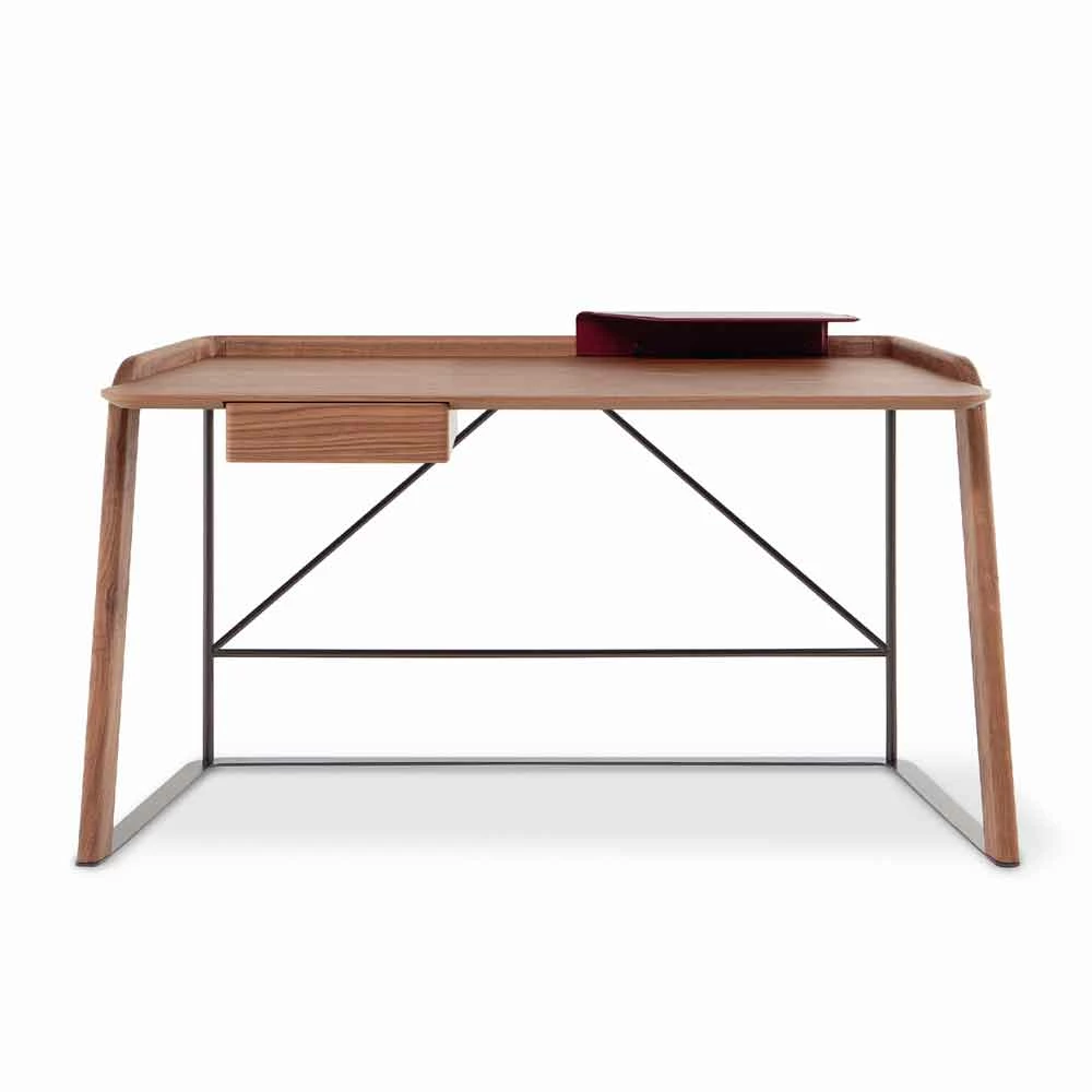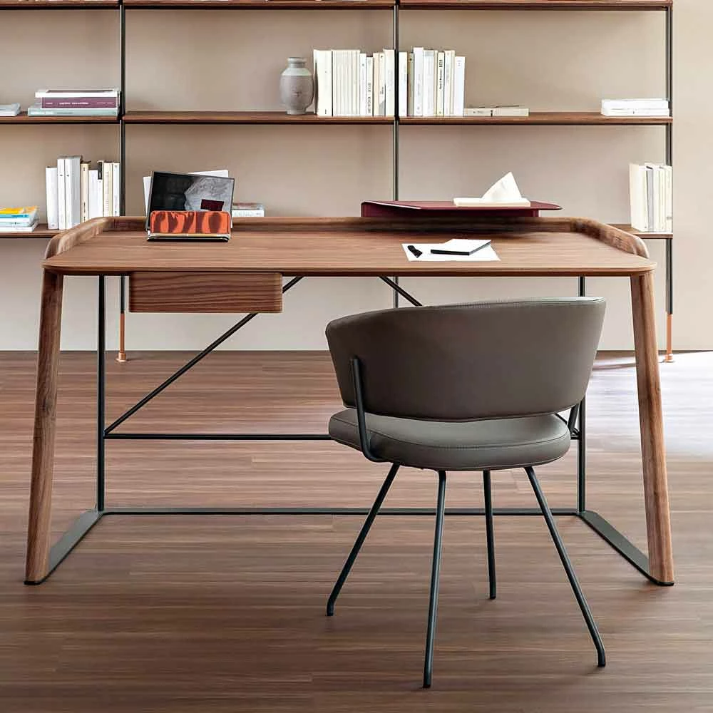 Design bureau in hout en metaal met leren plank, Made in Italy.