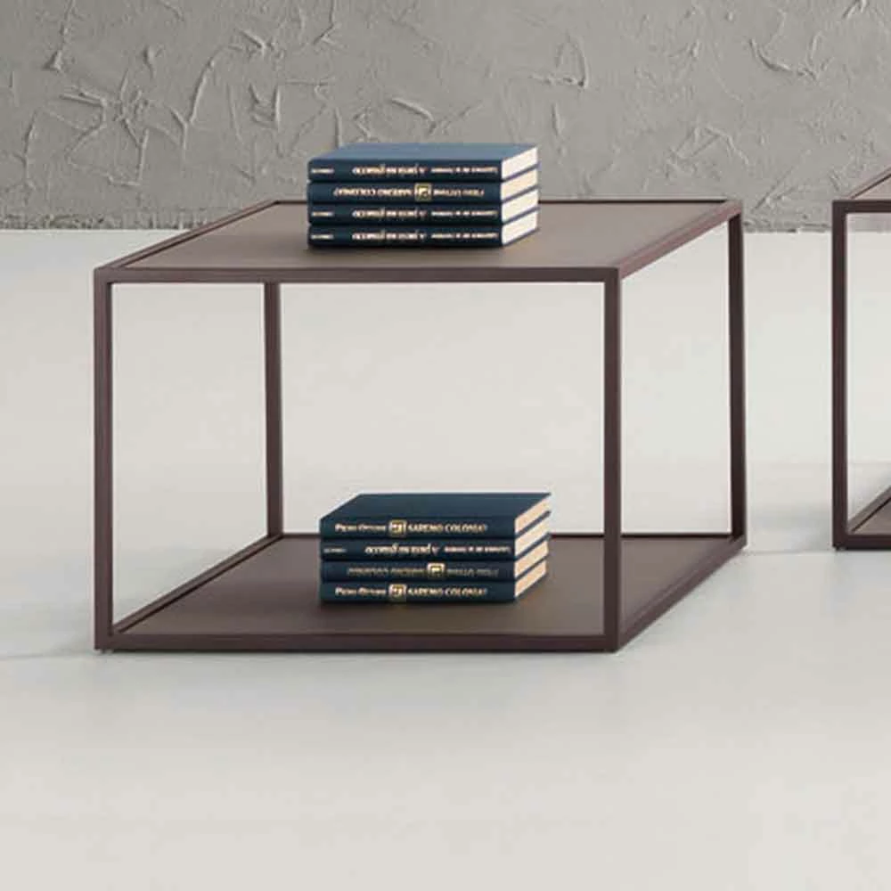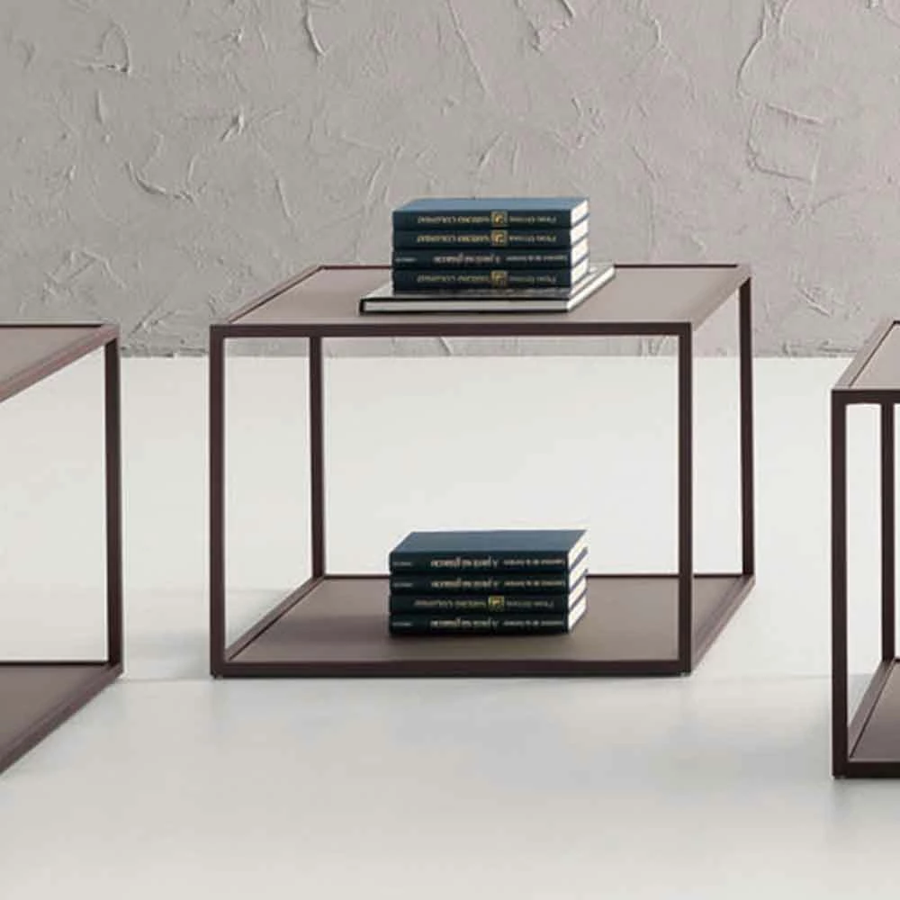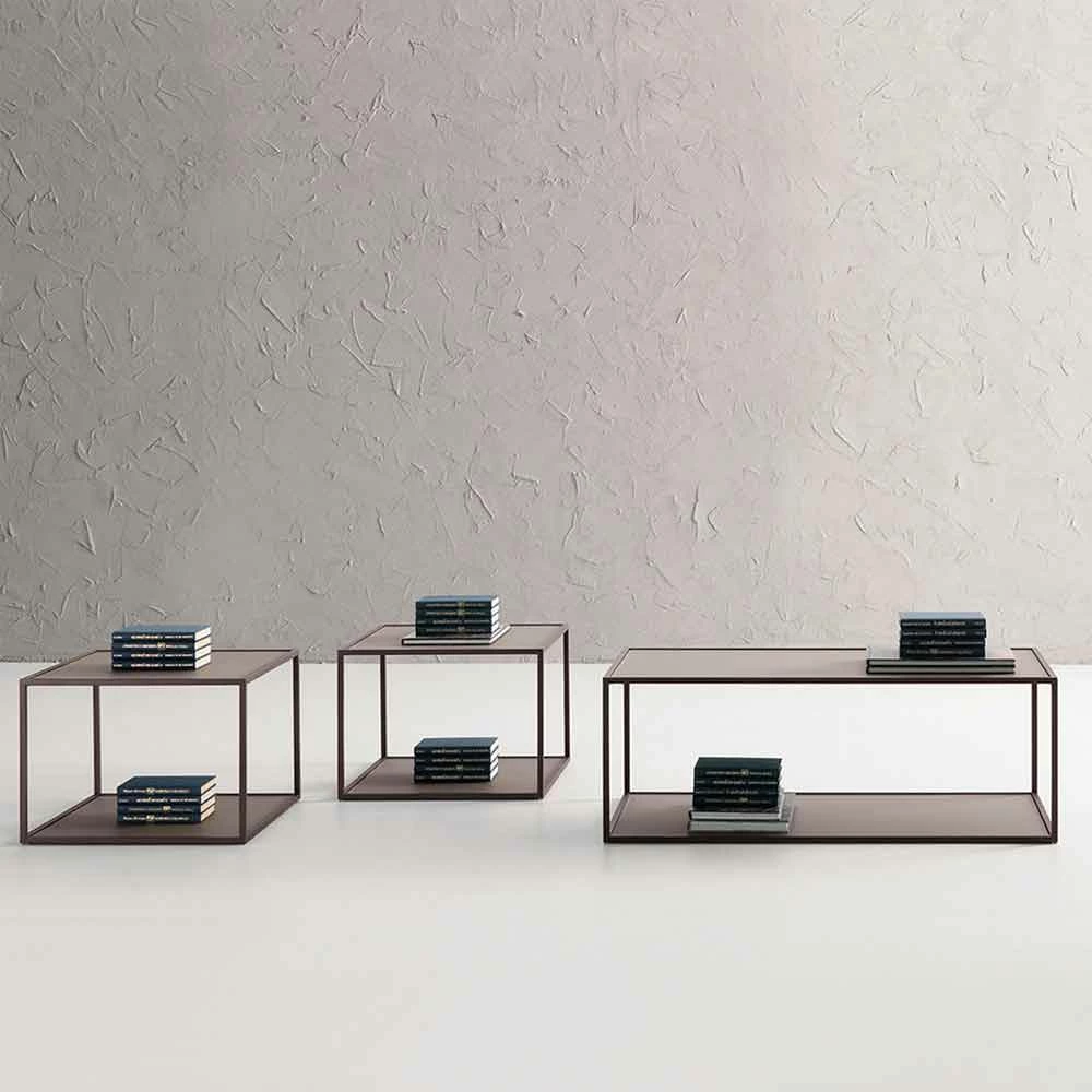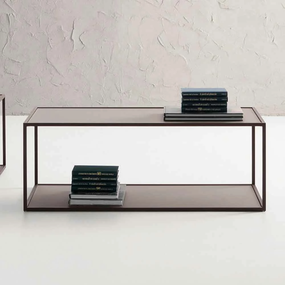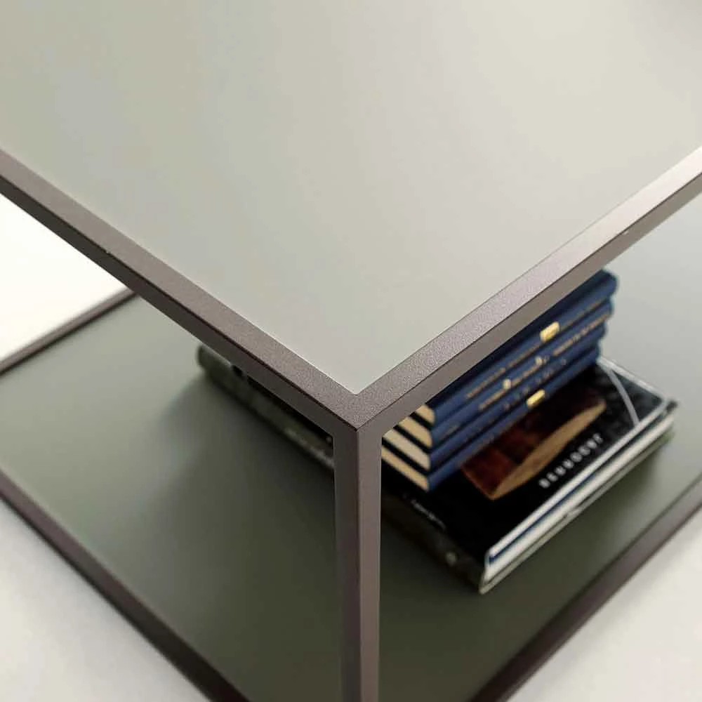 Salontafel gemaakt in Italië met een structuur van geverfd metaal met grafietafwerking en dubbel blad van satijnglas met anti-vingerafdruk en modderafwerking. Een product waarvan het idee is gebaseerd op eenvoud en wezenlijkheid om een meubelstuk tot leven te brengen met een moderne en veelzijdige stijl die in staat is om zich aan elke woonkamer aan te passen en een innovatief en elegant tintje met zich meebrengt. De specifieke conformatie van de structuur maakt het mogelijk om een dubbel steunoppervlak te verkrijgen en biedt zo de mogelijkheid om verschillende nuttige objecten zoals boeken, tijdschriften of afstandsbedieningen te organiseren, maar ook eenvoudige decoratieve elementen die het ontwerp verrijken en de waarde ervan verhogen door het te benadrukken. de exclusieve esthetiek .