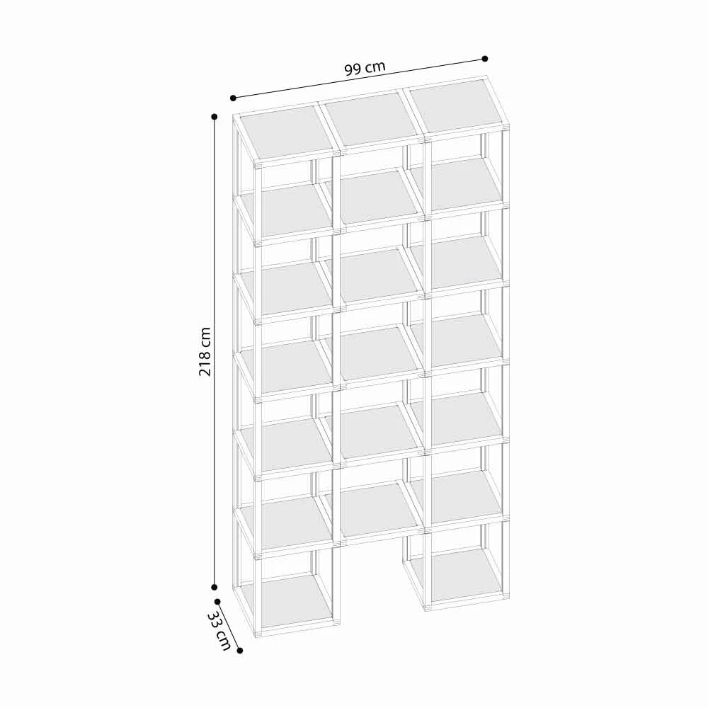 Structuurmaterialen , in massief natuurlijk eiken, bladen zijn in gesatineerd acryl. Op verzoek kunnen de bladen de volgende kleuren hebben: zwart, rood, blauw, gerookt, transparant of gespiegeld. De kant met de deur is transparant. Inbegrepen zijn 4 boekensteunen voor elke module van elke toren.