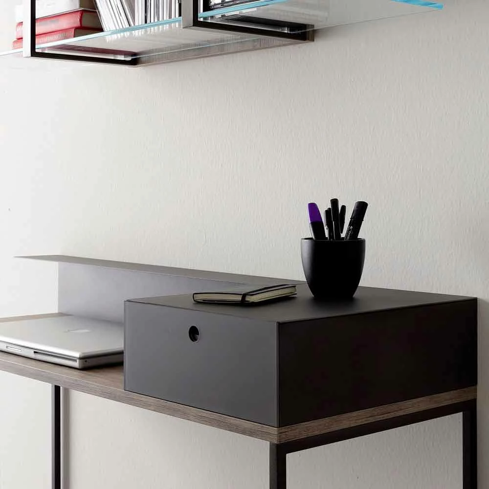 Modern bureau in melamine en metaal met mokka-kleurige lade en achterwand Made in Italy.