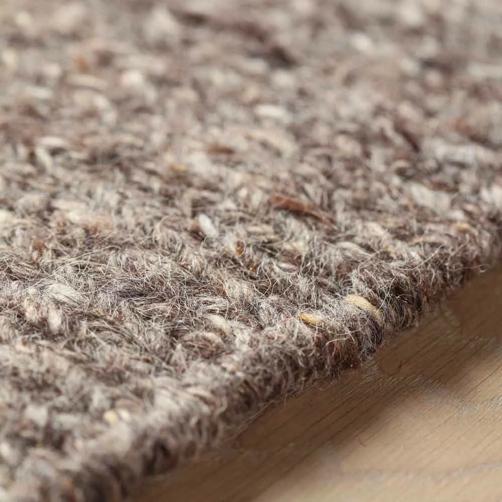 Modern design zacht tapijt verkrijgbaar in twee afmetingen in wol en bruin of crème katoen.