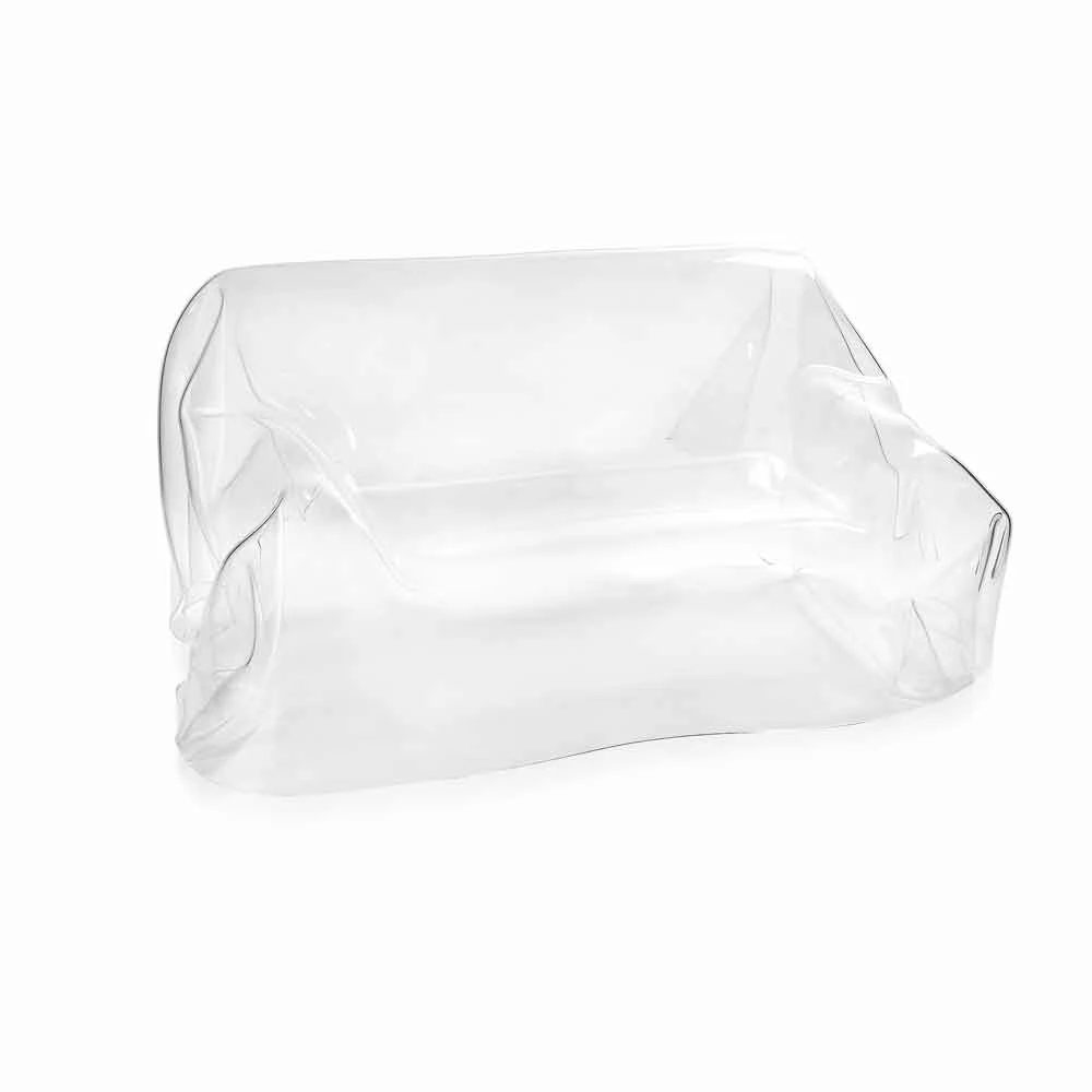De bank gedrapeerd Jolly is uniek. Uit een plaat maagdelijk polymeer 100% transparant PMMA plexiglas geheel gedrapeerd met de hand wordt geboren een unieke en eenmalige bank. De structuur die is volledig zelfdragend en is geschikt voor 2 personen. De fysieke en technische kenmerken van plexiglas (shock, stressbestendig, duurzaam, warmte-isolerend) maken dit artikel een aanvulling van praktische en functionele meubels, geschikt voor elke omgeving. De helderheid en de helderheid blijven constant en ongewijzigd in de tijd. De plexiglas PMMA uit nieuwe polymeer wordt gebruikt door niet-toxisch, hypoallergeen, geurloos en antibacteriële. Recyclebaar 100%. Bedacht, ontworpen en gemaakt in Italië, met Italiaanse materialen.