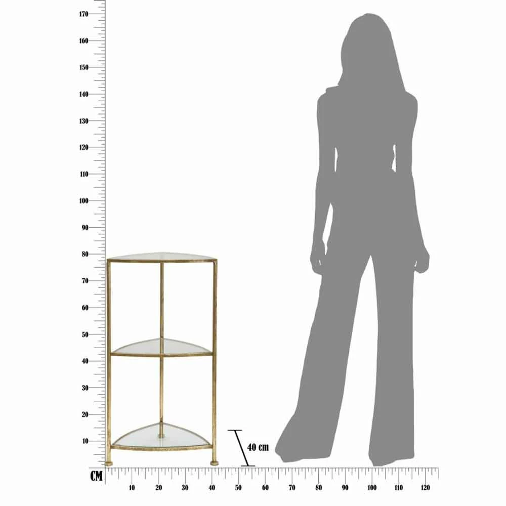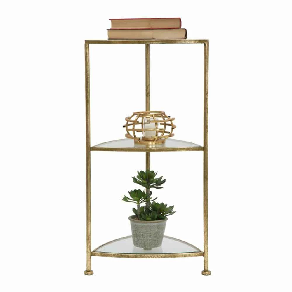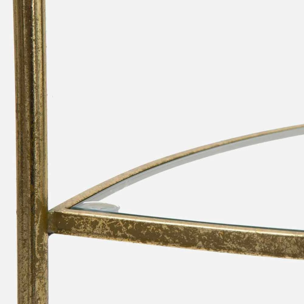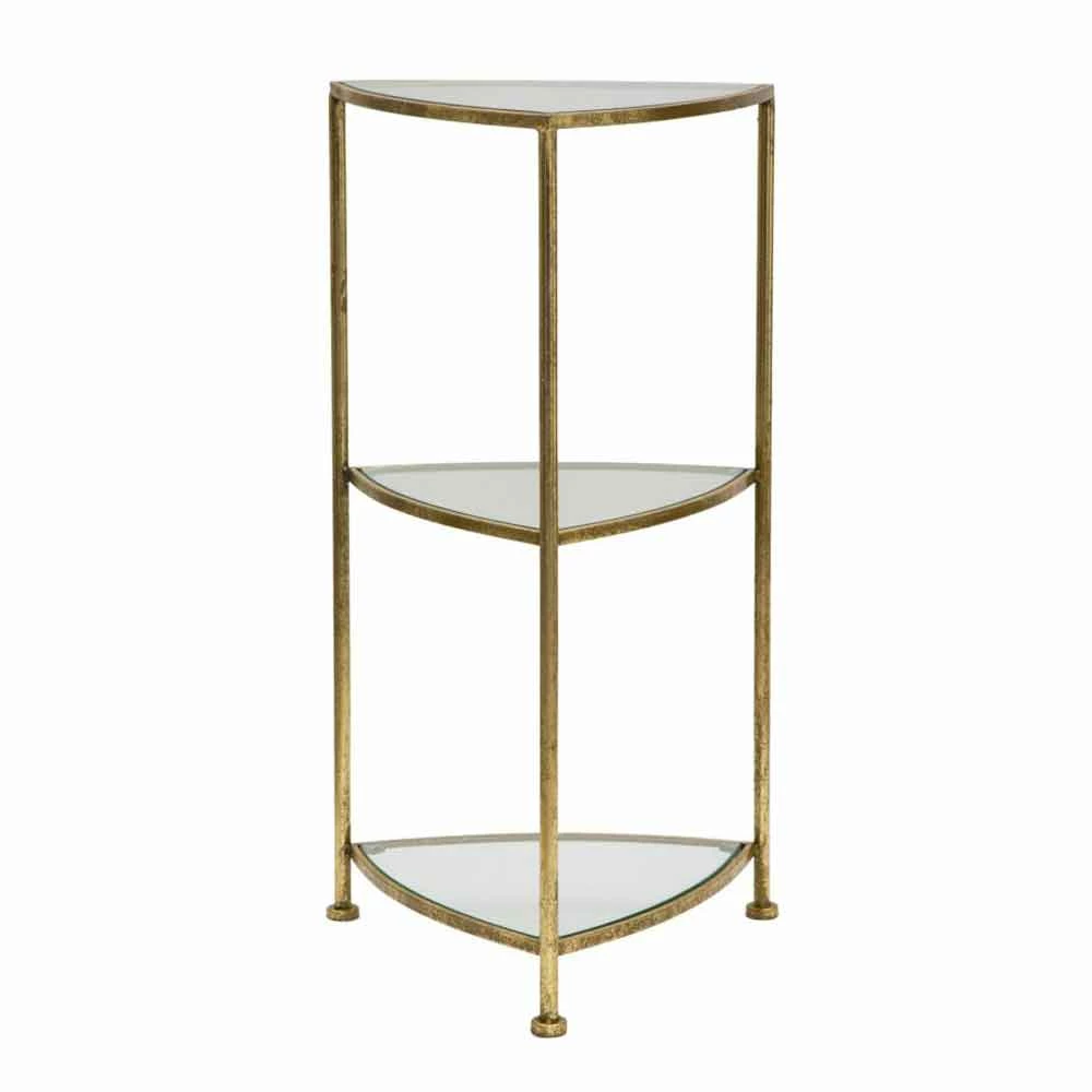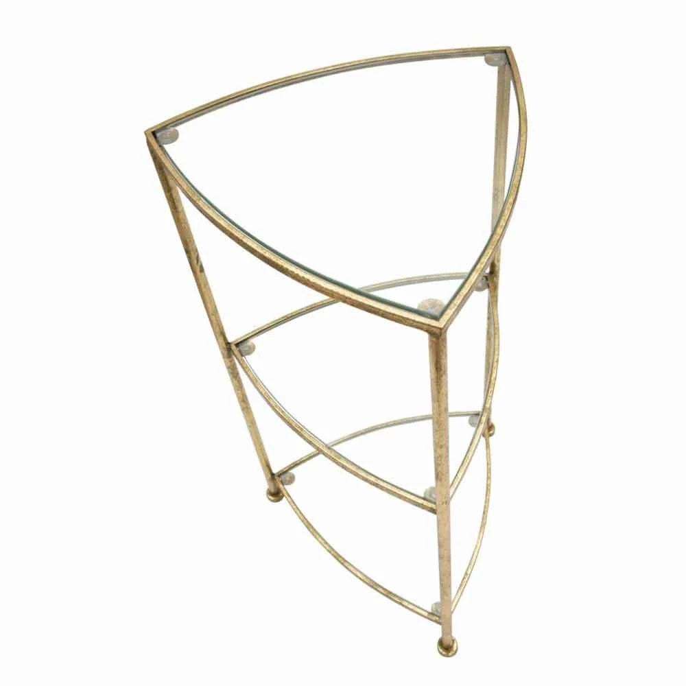 Driehoekige design telefoonstandaard in ijzer met glazen blad.