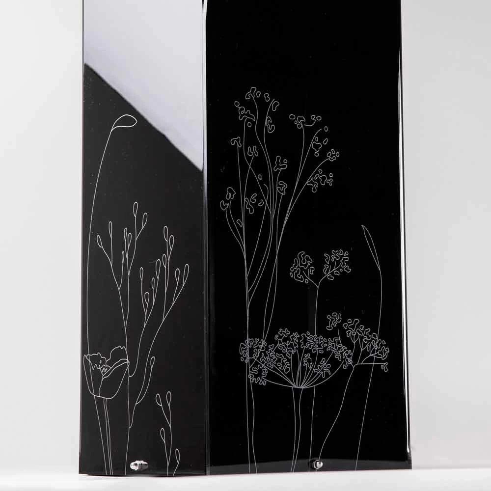 De paraplubak in plexiglas is gemaakt in twee afwerkingen en wordt gekenmerkt door de lasergemarkeerde bloemendecoraties met een gestileerde stijl met een roestvrijstalen voet.