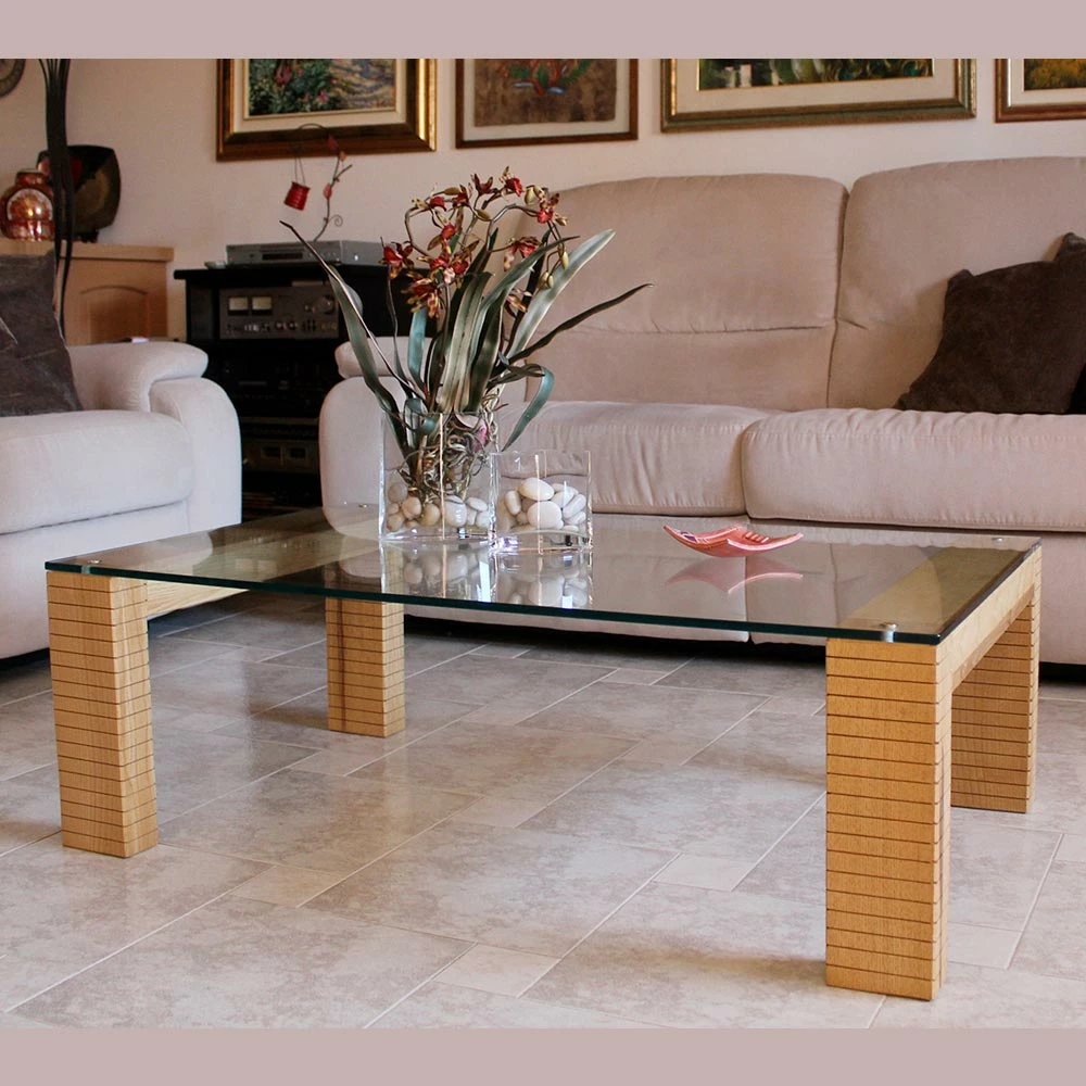 Narseo is een salontafel handgemaakt in Italië met eersteklas materialen. De bovenkant is van gehard glas (1 cm dik), terwijl de basis is van massief essenhout en is verkrijgbaar in twee verschillende afwerkingen: