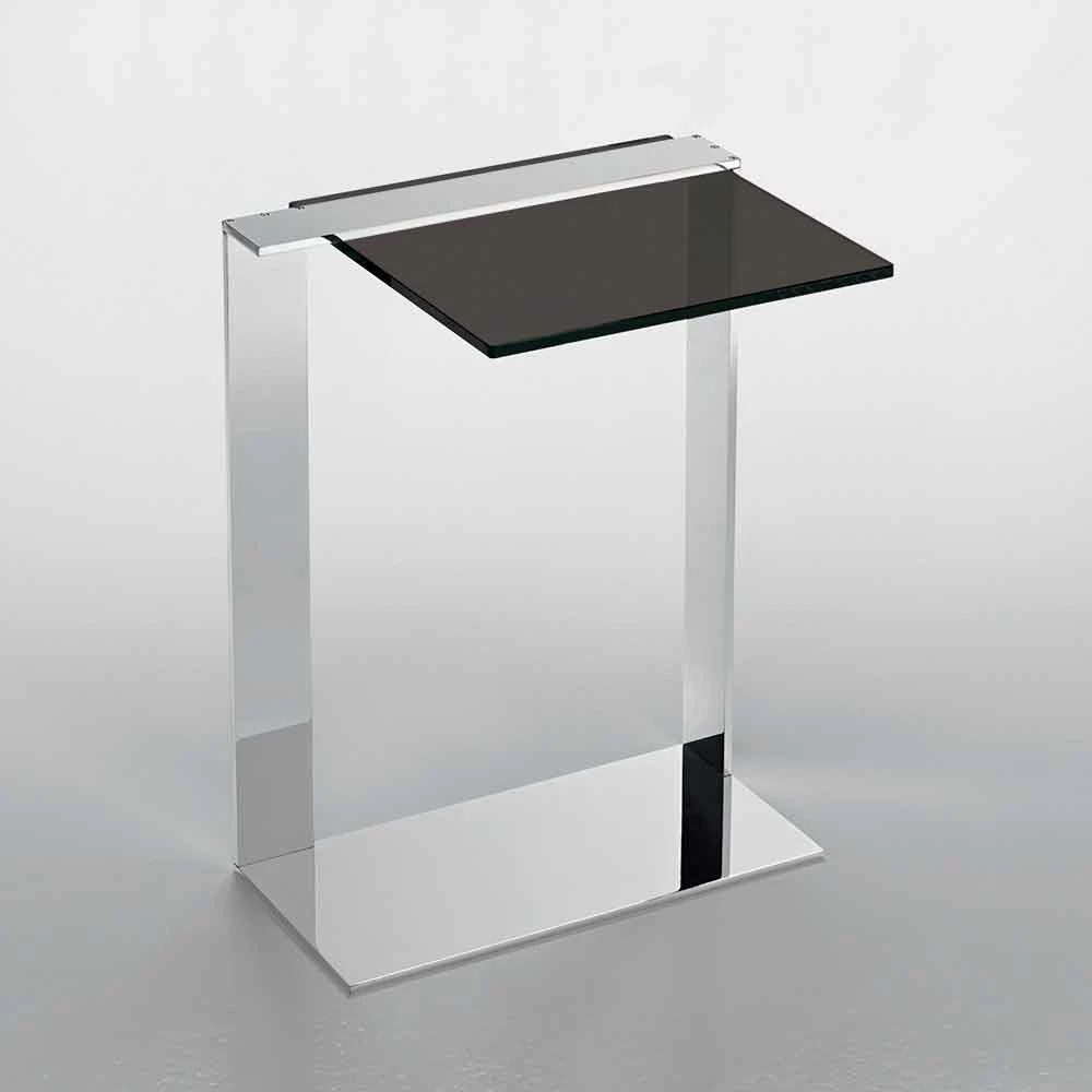 Geproduceerd met een metalen voet en een extra helder of gerookt glazen blad (12 mm dik).