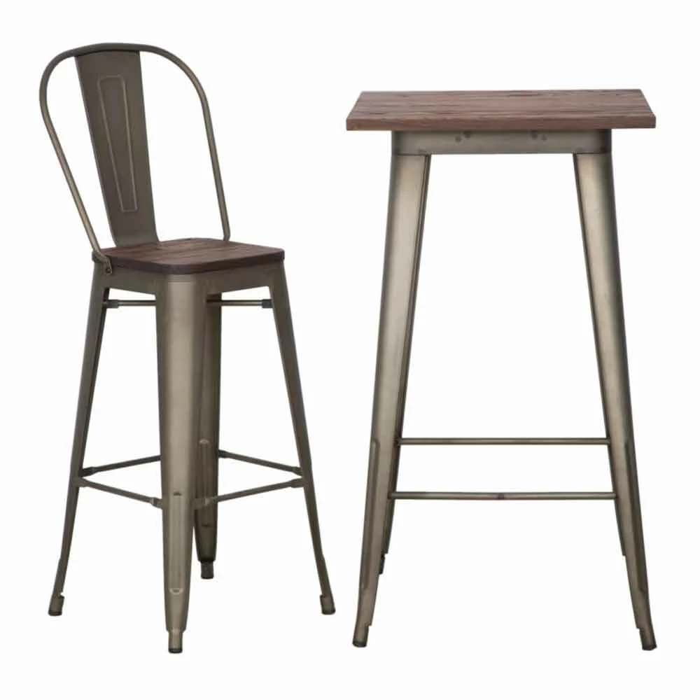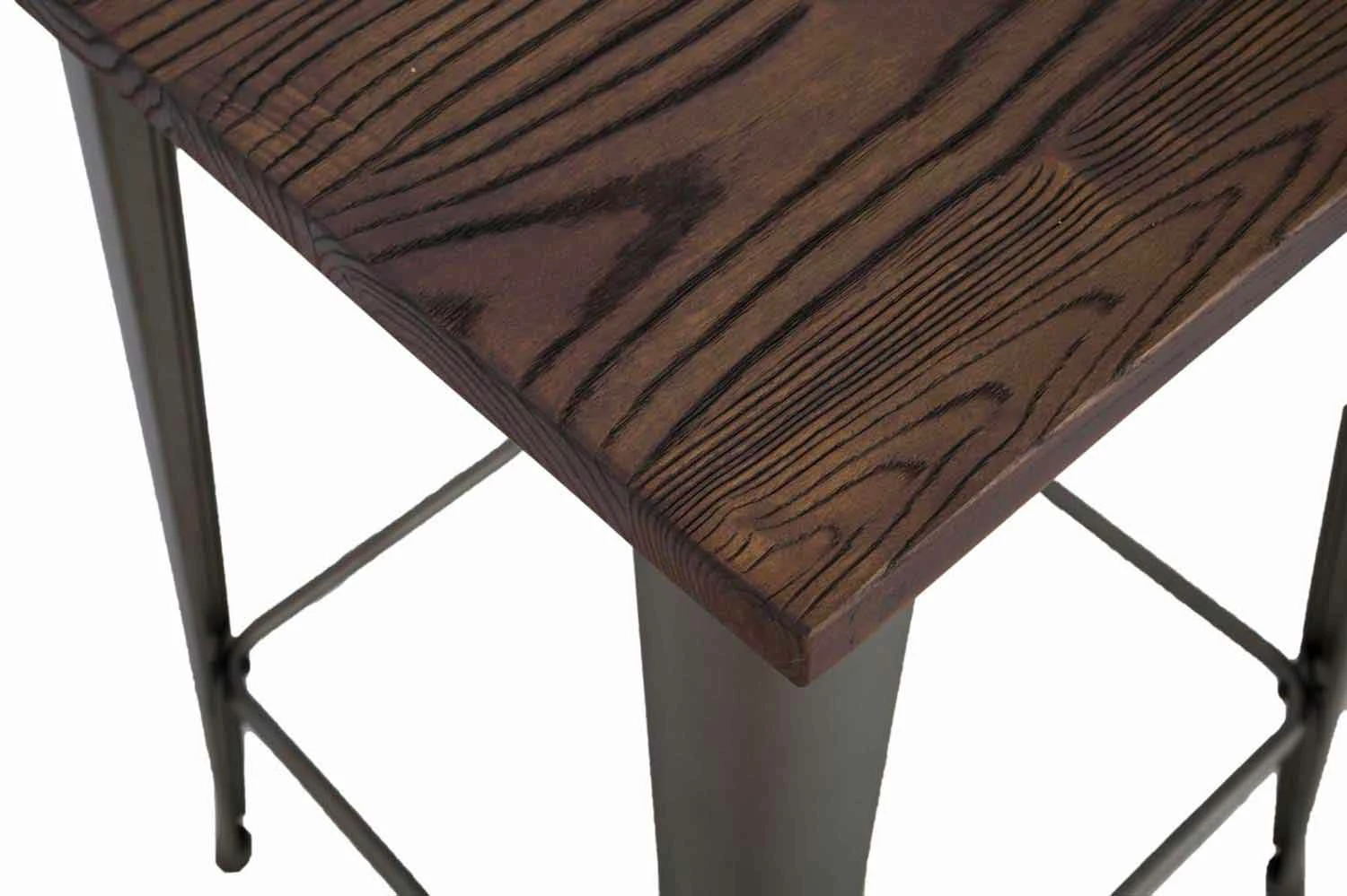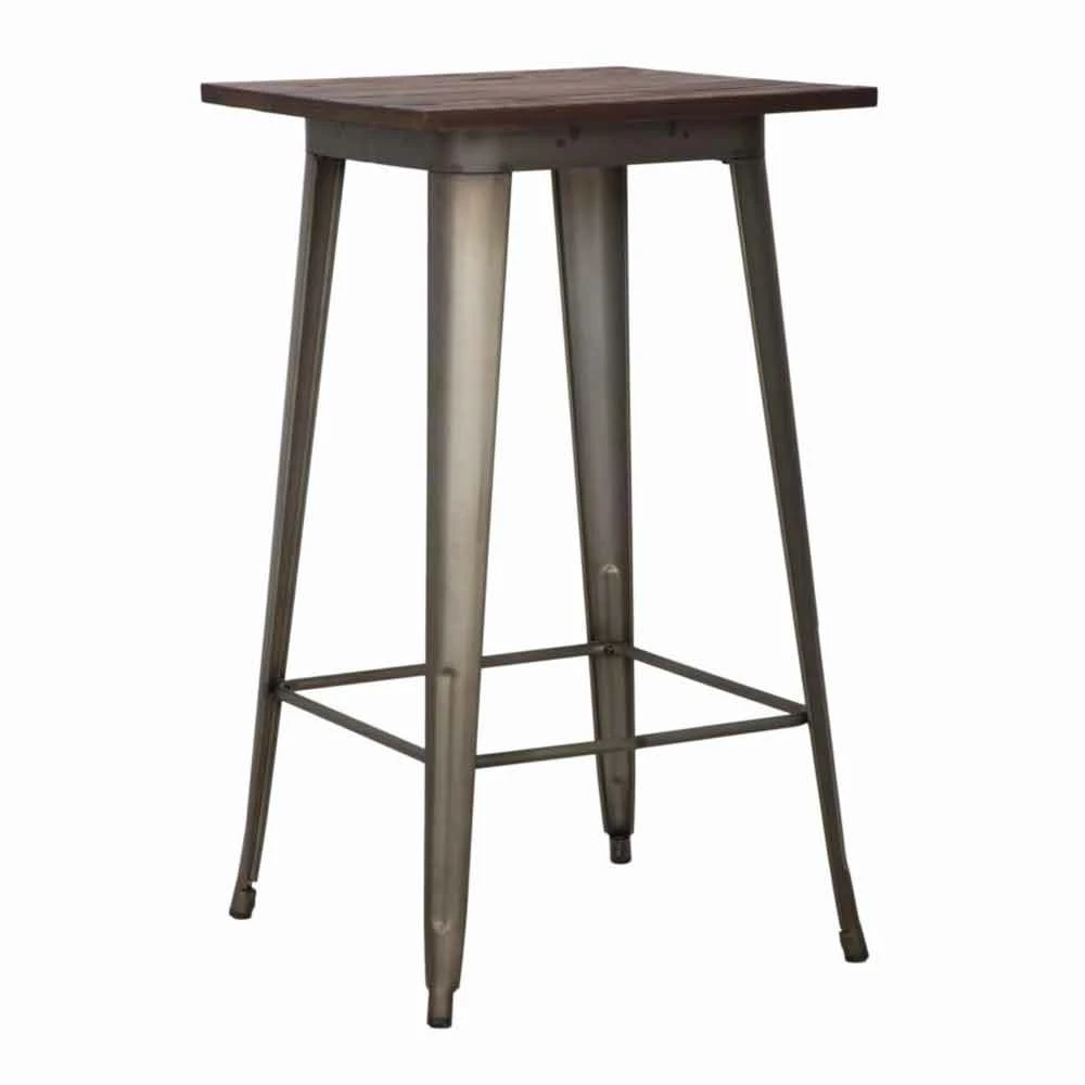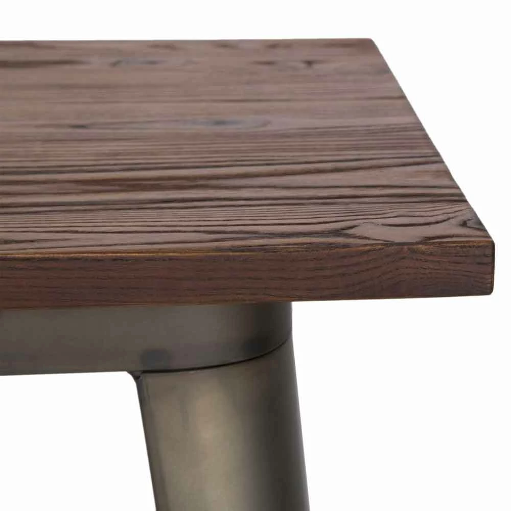 Industriële vierkante salontafel in ijzer met houten blad van modern design.