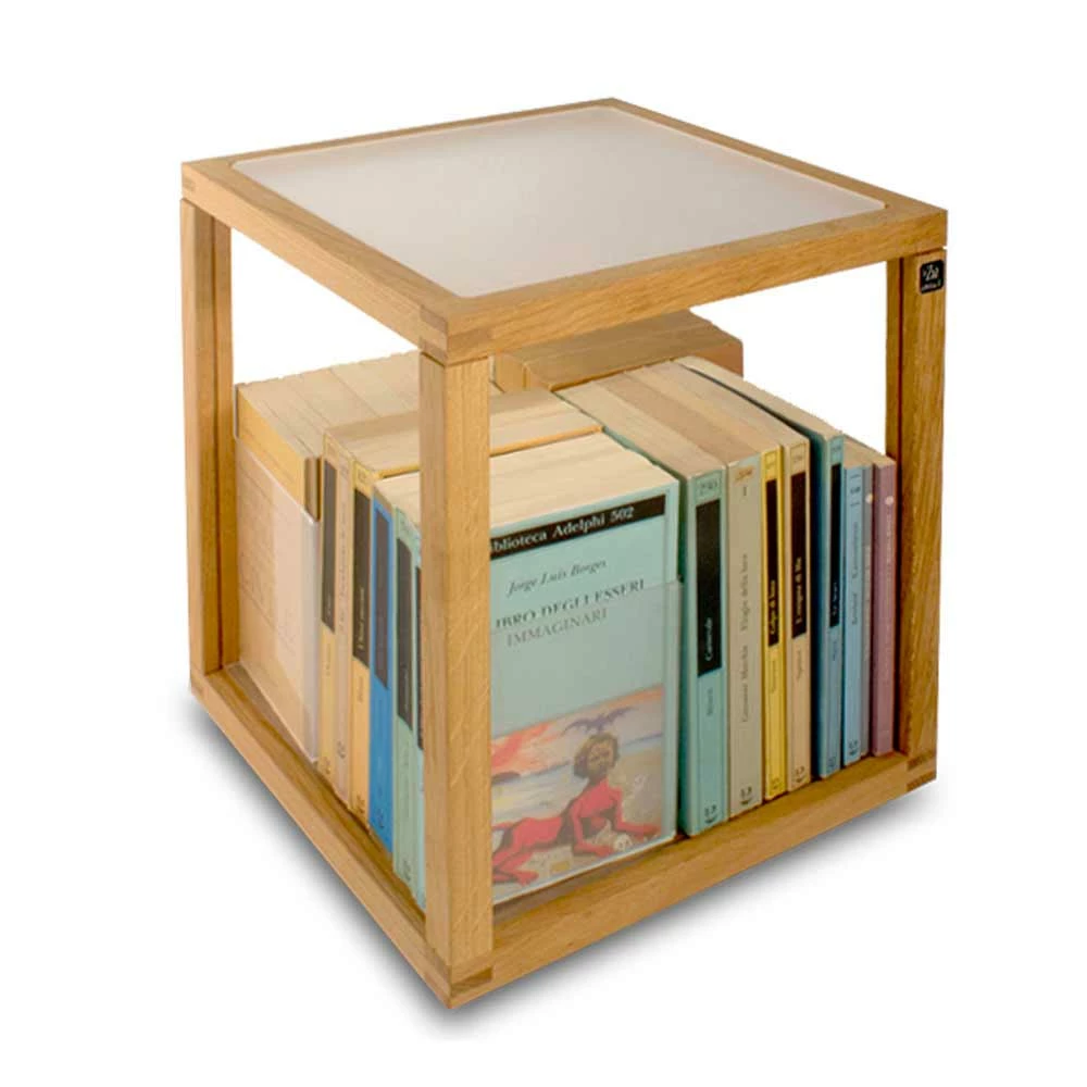 Structuurmaterialen , in massief natuurlijk eiken, de planken en boekensteunen zijn in gesatineerd acryl.