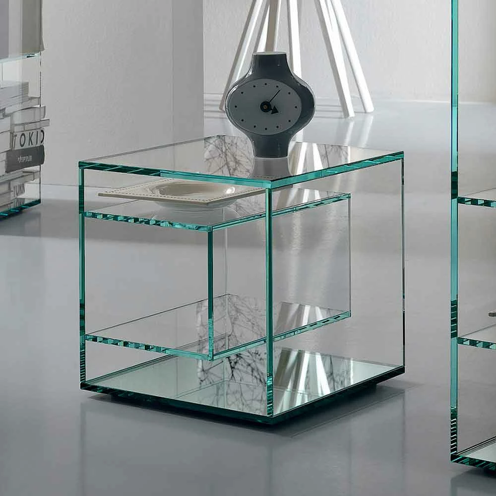Dit nachtkastje wordt gekenmerkt door zijn elegante en minimalistische design, volledig gemaakt van extra helder glas.