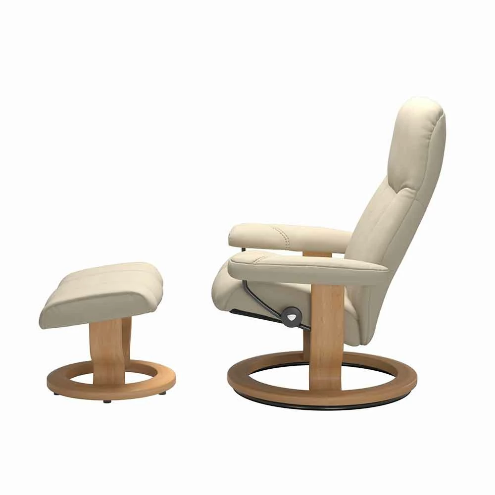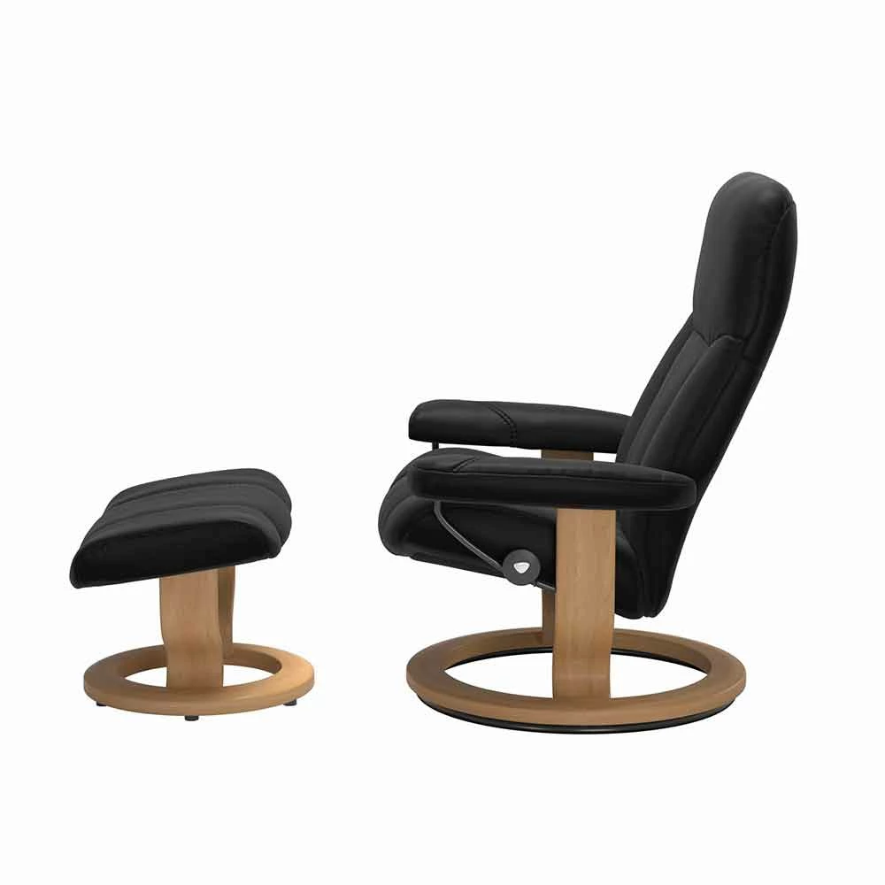 Iedereen verdient een zachte plek om te zitten. De Stressless Consul is een verstelbare fauteuil met een klassieke vorm en een uniek design. Het past zich gemakkelijk aan elk huis aan en zal je altijd een warm welkom geven. Net als alle andere niet-stressstoelen bevat het de wereldberoemde Stressless-functie waarmee je één wordt met de stoel zodra je gaat zitten.