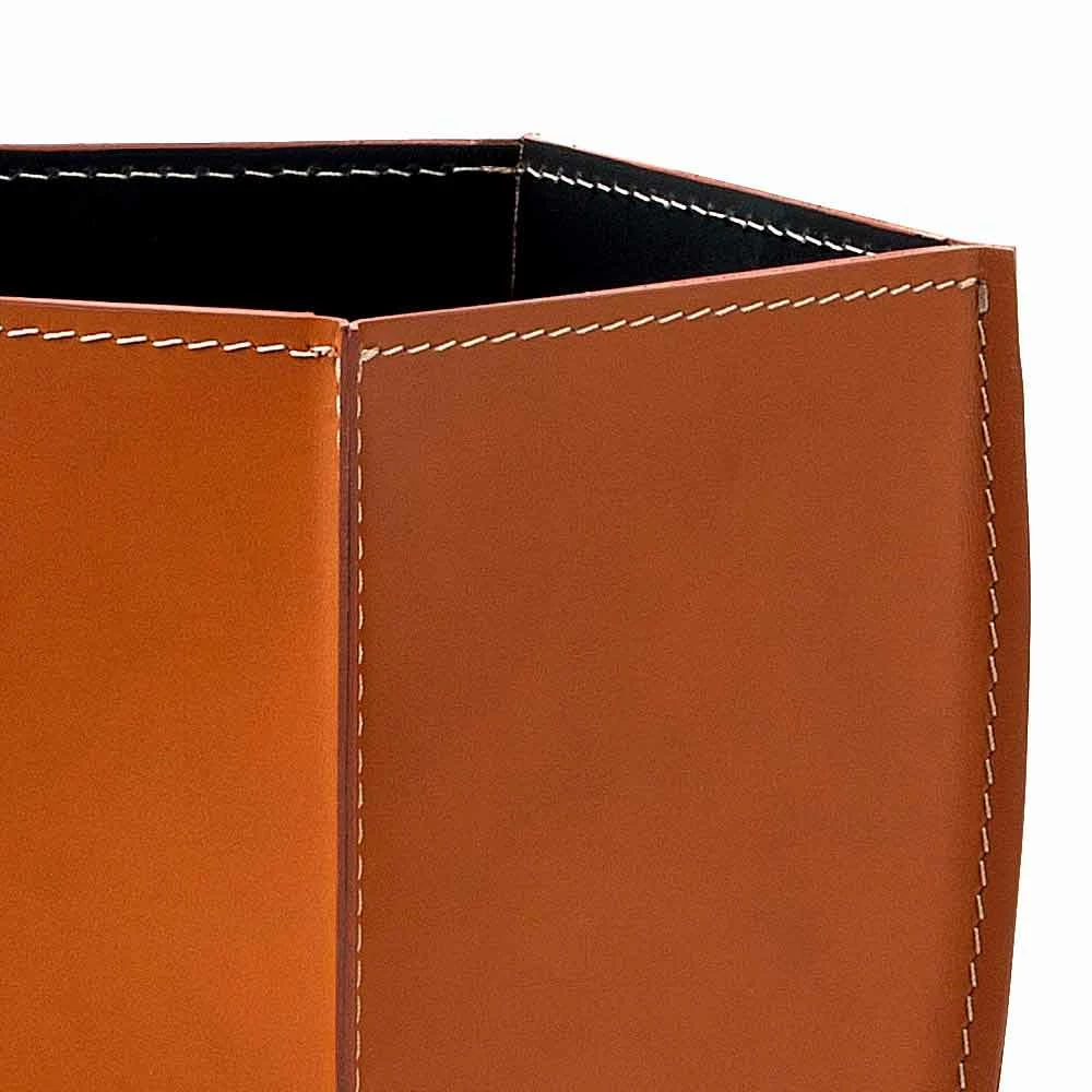 Het is gemaakt van geregenereerd leer, zowel van binnen als van buiten en heeft een multiplex bodem, ook bekleed met leer.