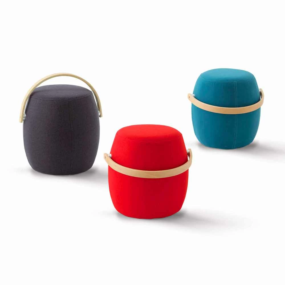 Het handvat is van natuurlijk beuken. Stoffen poef met gekleurd handvat gemaakt in Foligno, Italië