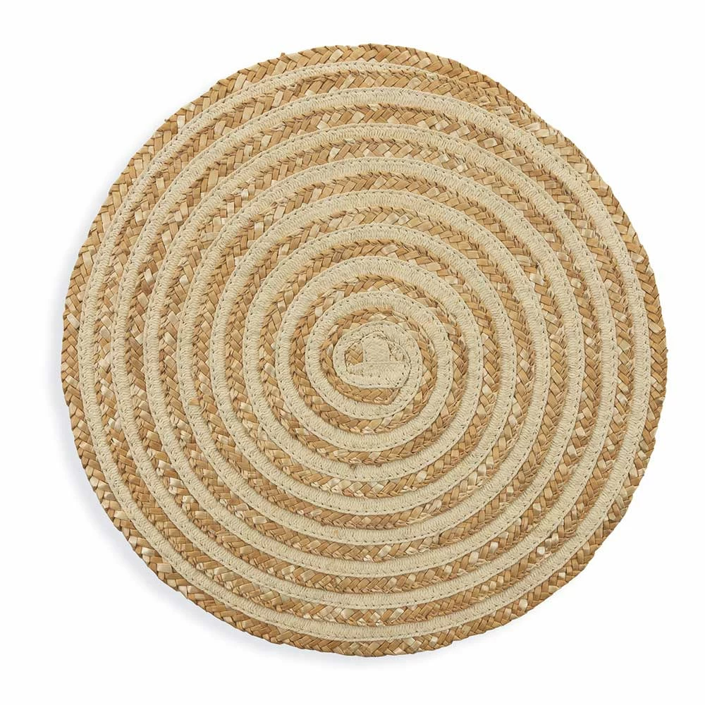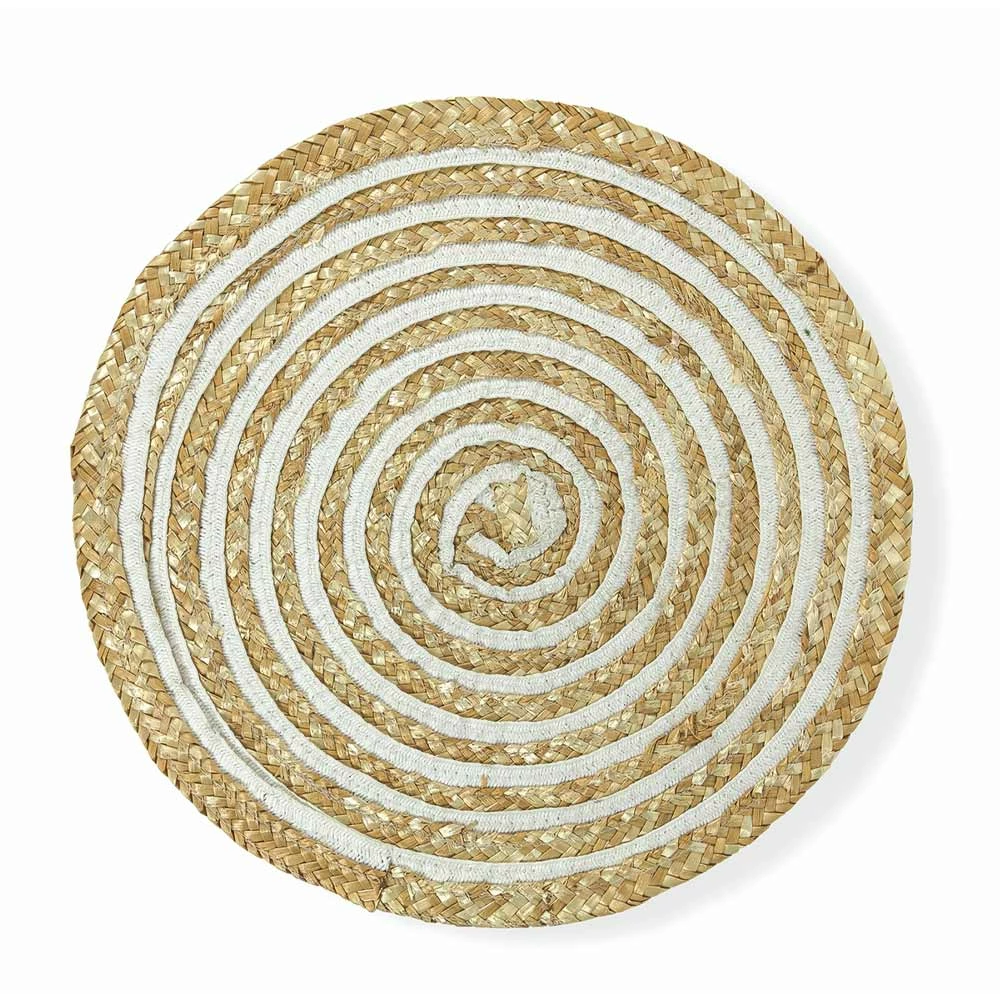 Ronde raffia placemats in verschillende afwerkingen, 12 stuks.