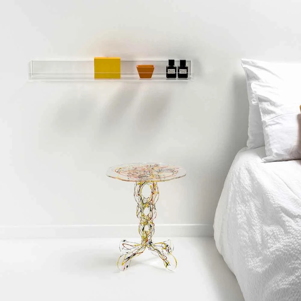 Kogels Moreschi voor de excentrieke tafel Janis, bruikbaar als een salontafel, een nachtkastje of een tafel buiten. De basis in doorzichtige plexiglas lasergesneden maakt het onopvallend, terwijl de ambachtelijke verf als eerbetoon aan Jackson Pollock geeft een vleugje originaliteit. Zowel de transparante basis die de plank zijn van acrylglas PMMA met 100% maagdelijk polymeer. De plexiglas schokbestendig, veerkrachtig, duurzaam en warmte-isolatie. De helderheid en de helderheid blijven constant en ongewijzigd in de tijd. De plexiglas PMMA uit primaire polymeer niet-toxisch, hypoallergeen, geurloos en antibacteriële. Recyclebaar 100%. In overeenstemming met de UNI EN 71-3: 200. De kleur kan kleine variaties ondergaan als gevolg van het handwerk realiseren. Bedacht, ontworpen en gemaakt in Italië, met Italiaanse materialen.