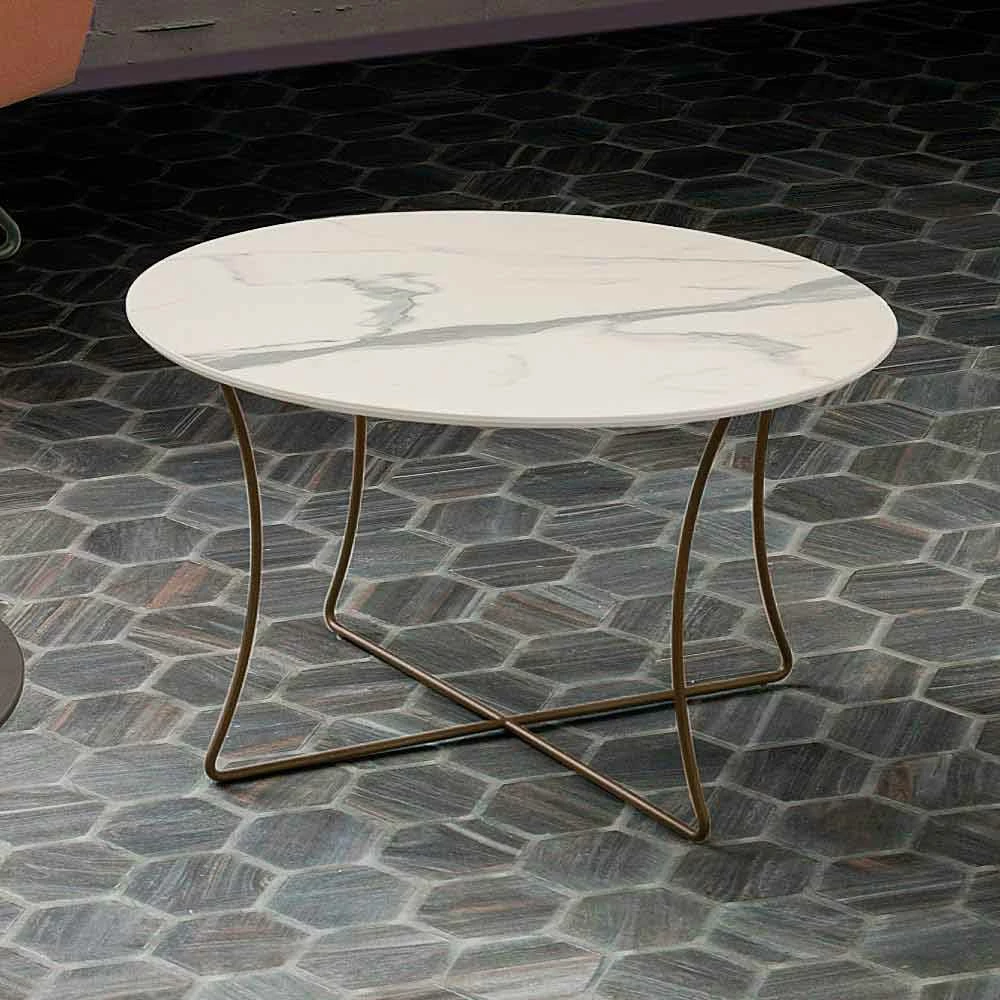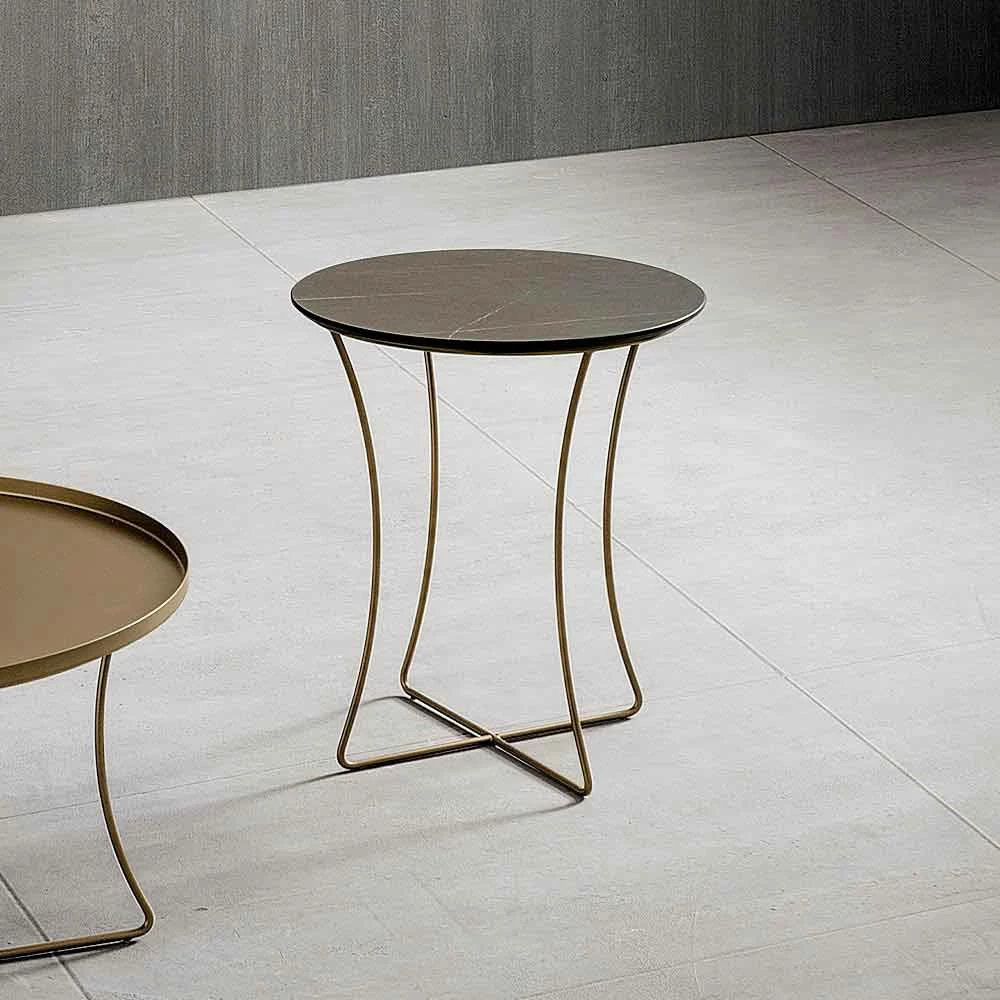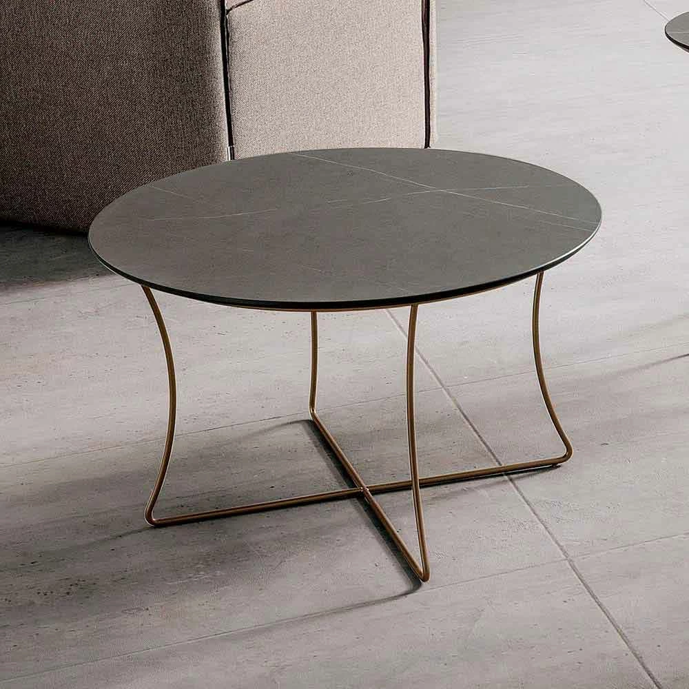 Salontafel met rond blad in gelaagd hpl (dikte 10 mm) en onderstel in metaal geverfd met epoxypoeders in bronzen afwerking. Gemaakt in Italië met kostbare grondstoffen , vertegenwoordigt dit meubelstuk een innovatief idee dat de elegantie belichaamt van de prachtige voorgestelde afwerkingen met de moderniteit van de basis om leven te geven aan een tafel met lijnen die even eenvoudig als indrukwekkend zijn. Ideaal om uw woonkamer te verrijken en aan te vullen met stijl en persoonlijkheid, het is in staat om elke omgeving te karakteriseren en een exclusief en revolutionair tintje te geven. De twee beschikbare formaten maken het ook mogelijk om prachtige composities te creëren voor een nog verrassender en boeiender resultaat dankzij een ongewoon spel van verschillende hoogtes en afwerkingen. Samen met de esthetische kant besteedt deze tafel bijzondere aandacht aan de functionele kant door een steunoppervlak aan te bieden dat bestand is tegen chemische middelen, schuren en krassen dankzij het gebruik van hpl, een materiaal dat ook zorgt voor een stevig en robuust oppervlak dat in staat is om ongewijzigd te blijven tijd zijn esthetische kenmerken.