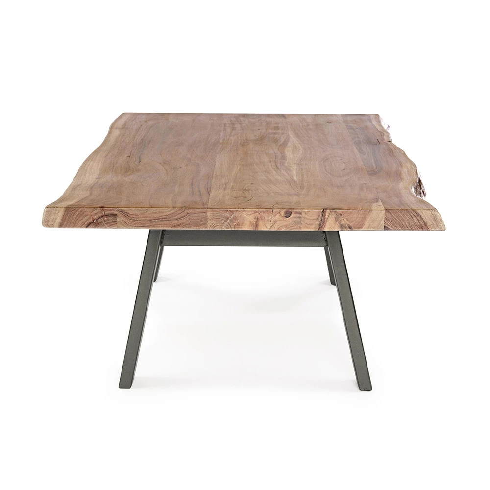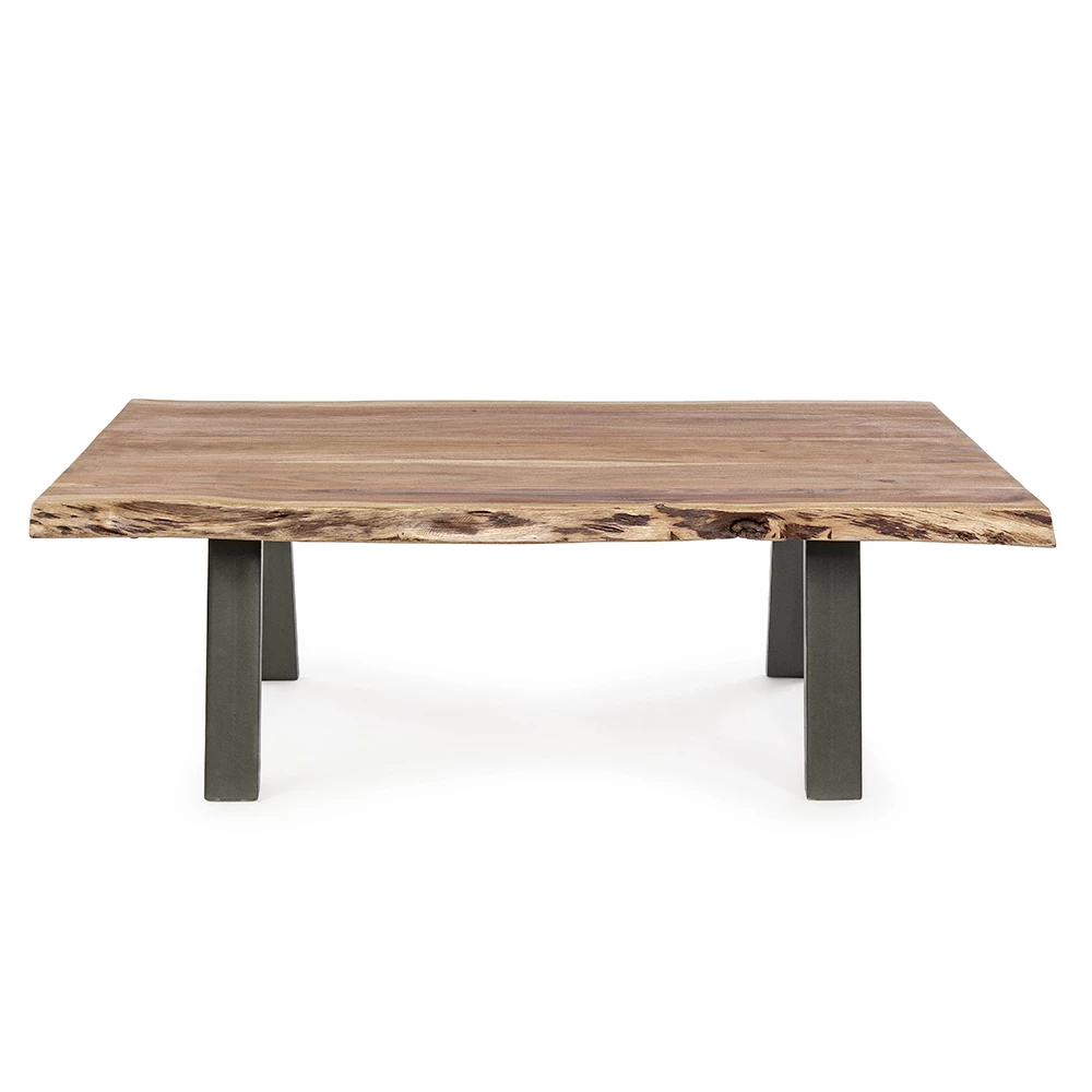 Salontafel in handgemaakt acaciahout en stalen poten.