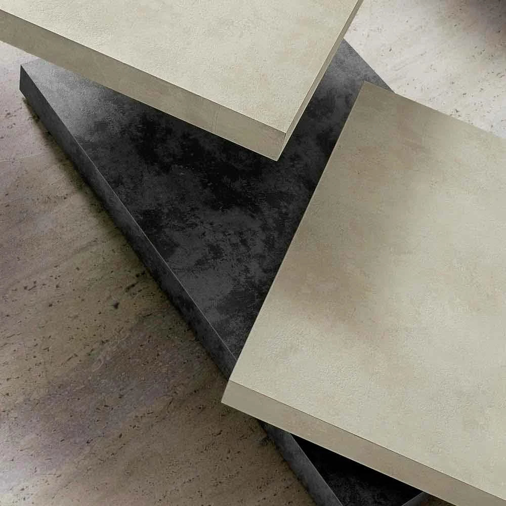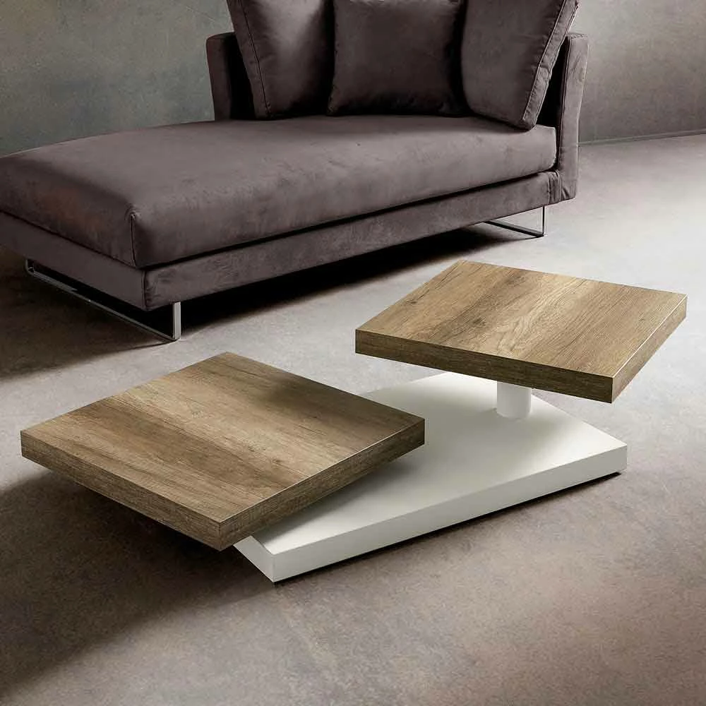Salontafel made in Italy met hpl onderstel en twee hpl of fenix draaibare bladen. Een innovatief en origineel inrichtingsidee waarmee je elke woonkamer kunt vervolledigen met een eigentijdse stijl met een vleugje persoonlijkheid en elegantie. Het detail van de draaibare planken geeft het artikel zijn creatieve ziel , terwijl de voorgestelde afwerkingen zijn esthetiek verrijken voor een stijlvol resultaat. De bladen roteren met een gedecentraliseerd zwaartepunt waardoor de tafel min of meer ingesloten vormen kan hebben volgens de verschillende behoeften en, dankzij het antislip rubberen rotatielager, wordt onwillekeurige rotatie vermeden, waardoor de functionele kant wordt vergroot. Door het ontwerp kan het meerdere rollen in de kamer spelen, een praktisch steunvlak en een fascinerend decoratief element met een sterke visuele impact, uniek in zijn soort. De gebruikte hoogwaardige materialen en de 100% Made in Italy-afwerking maken het ook mogelijk om een solide, resistente aanvulling te verkrijgen met een uitstekende duurzaamheid in de loop van de tijd.