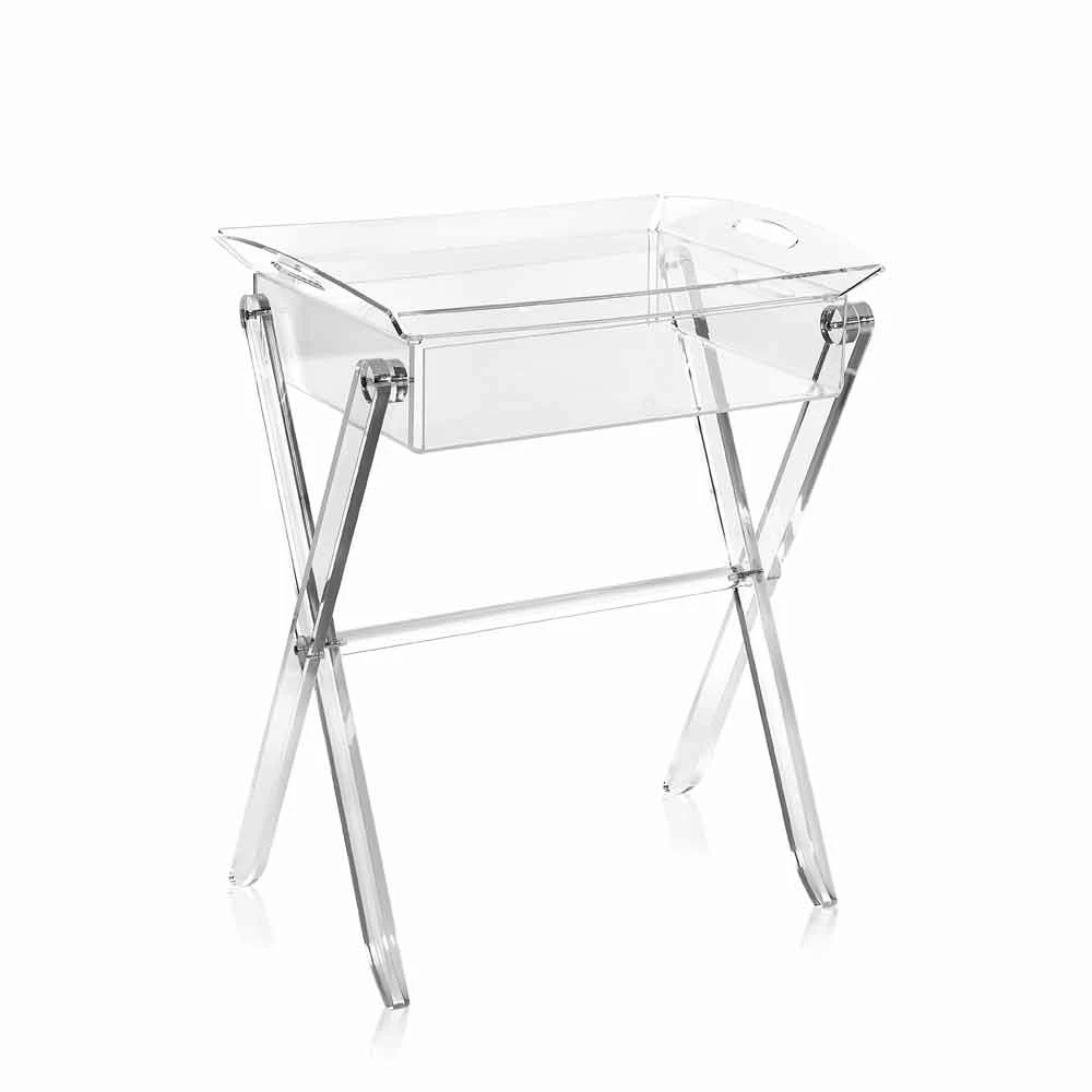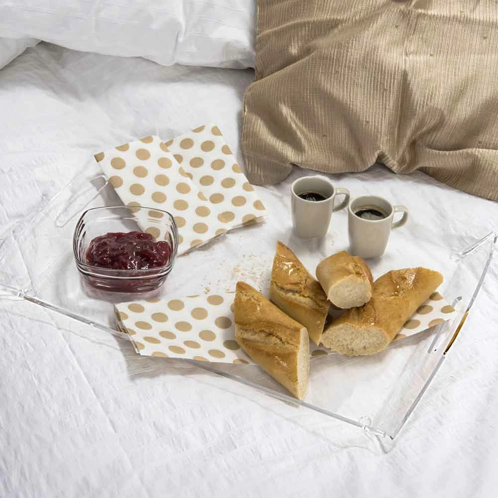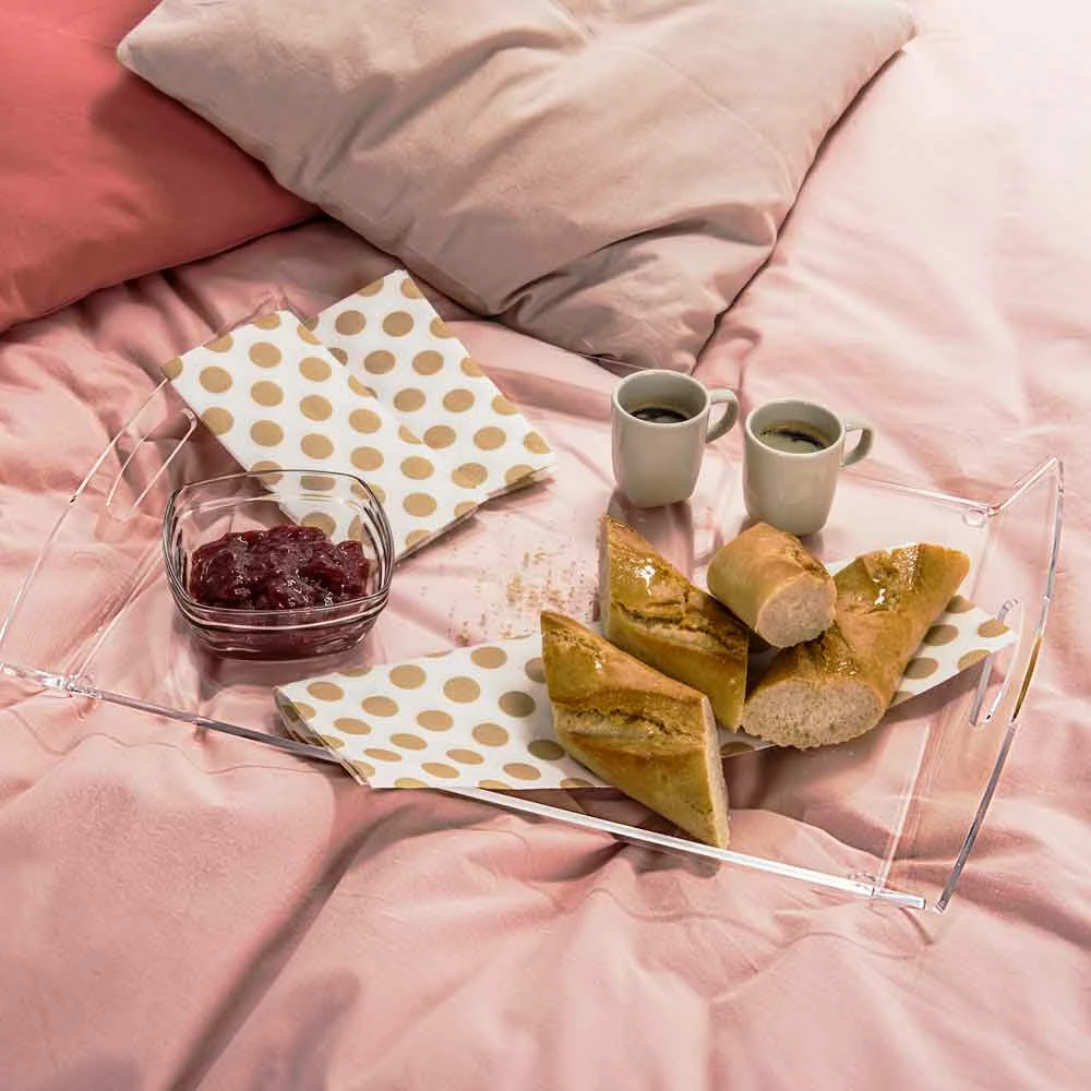 Discreet en elegant salontafel lunchbox met dubbele plank: een basis waar gerechten, gerechten of kranten, en een bovenste plank, die ook een handig bakje voor het serveren ontbijt op bed, koffie of thee te zetten. De broodtrommel is volledig gemaakt van 100% zuivere polymeer PMMA transparant plexiglas. De fysieke en technische kenmerken van plexiglas (shock, stressbestendig, duurzaam, warmte-isolerend) maken dit artikel een aanvulling van praktische en functionele meubels, geschikt voor elke omgeving. De helderheid en de helderheid blijven constant en ongewijzigd in de tijd. De plexiglas PMMA uit nieuwe polymeer wordt gebruikt door niet-toxisch, hypoallergeen, geurloos en antibacteriële. Recyclebaar 100%. Bedacht, ontworpen en gemaakt in Italië, met Italiaanse materialen.