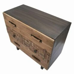 Dressoir Van Acaciahout En Ijzer Met 3 Moderne Designladen – Emerald