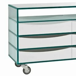 Ladekast In Extrahelder Glas Met Zes Lades In Wit Hout Gemaakt In Italië – Ganzo