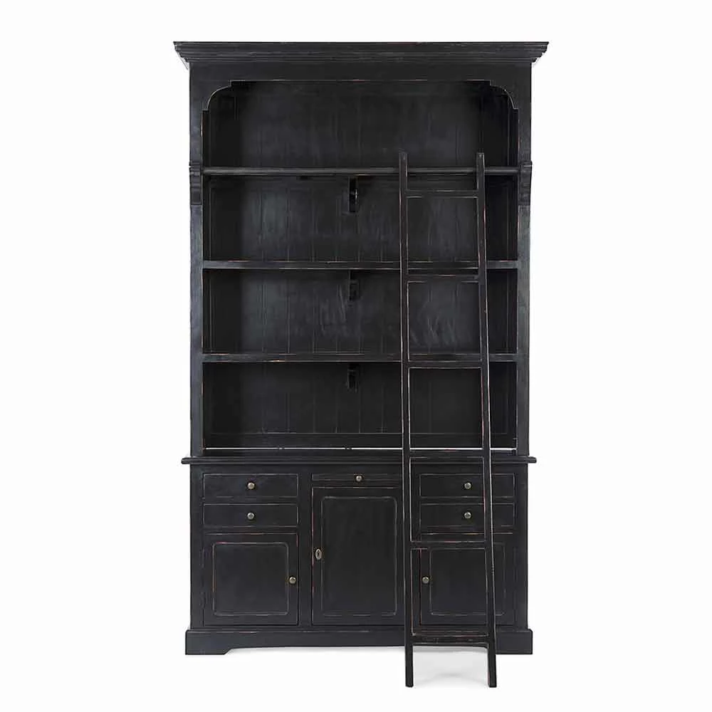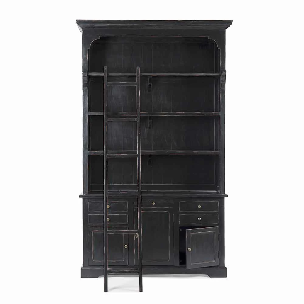 Vloerboekenkast in klassieke stijl van mangohout en MDF met gietijzeren handgrepen.