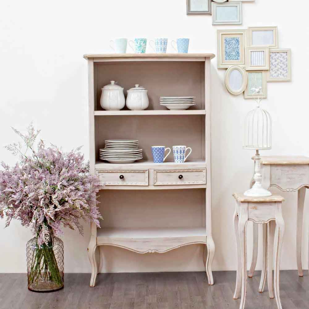 Vloer boekenkast in hout en mdf met klassiek design stalen knoppen.
