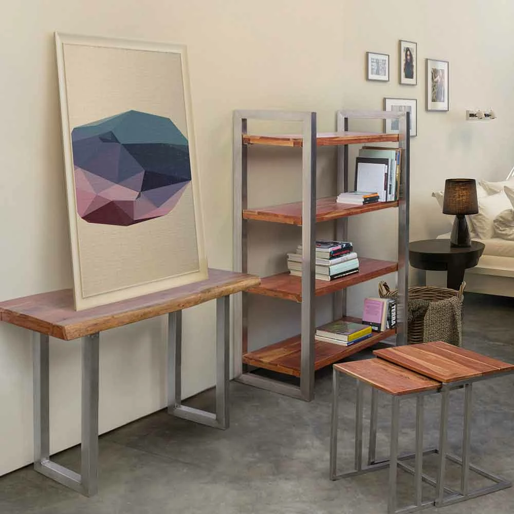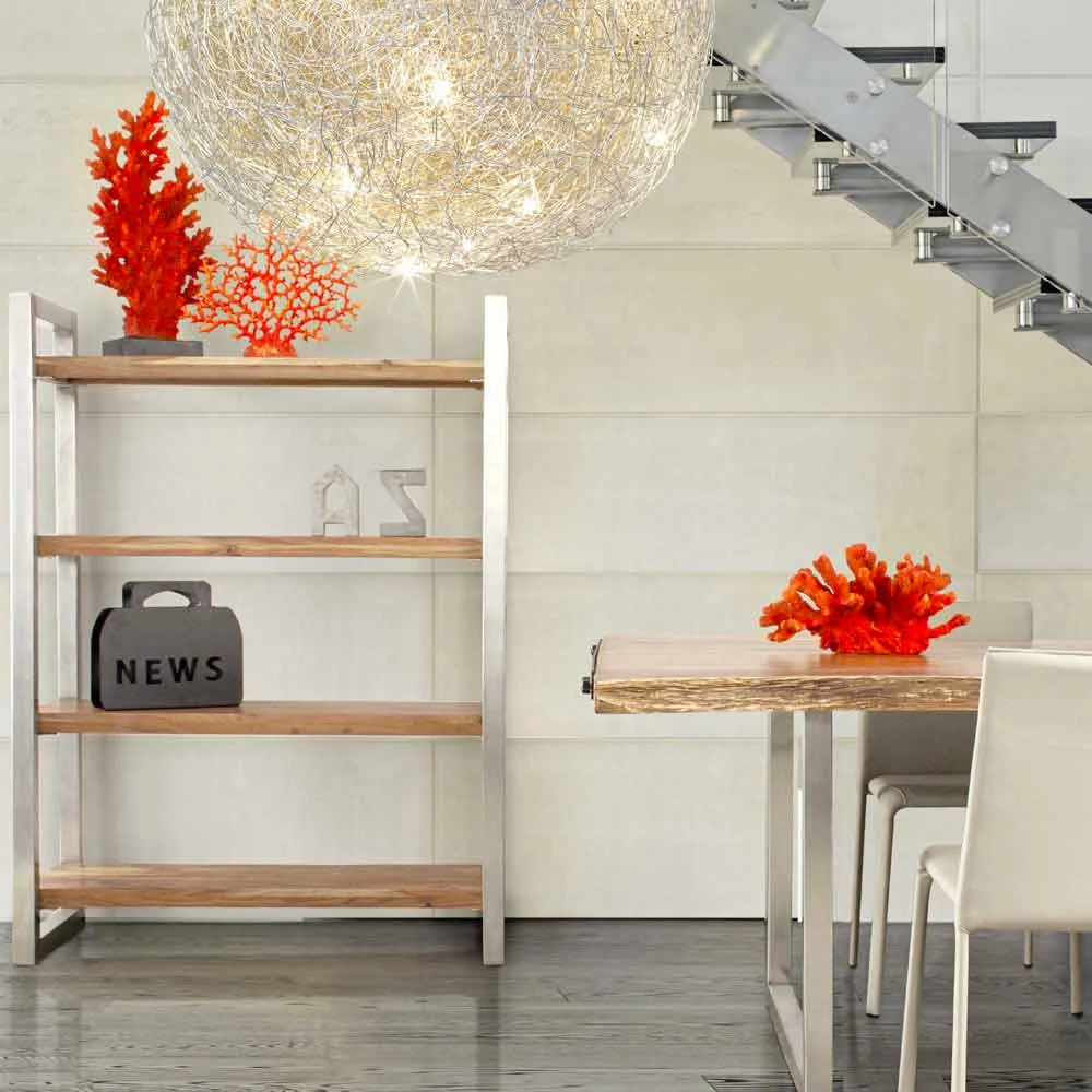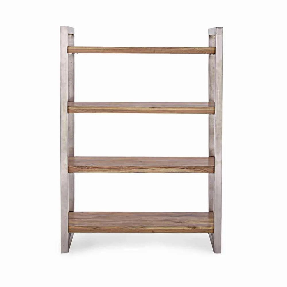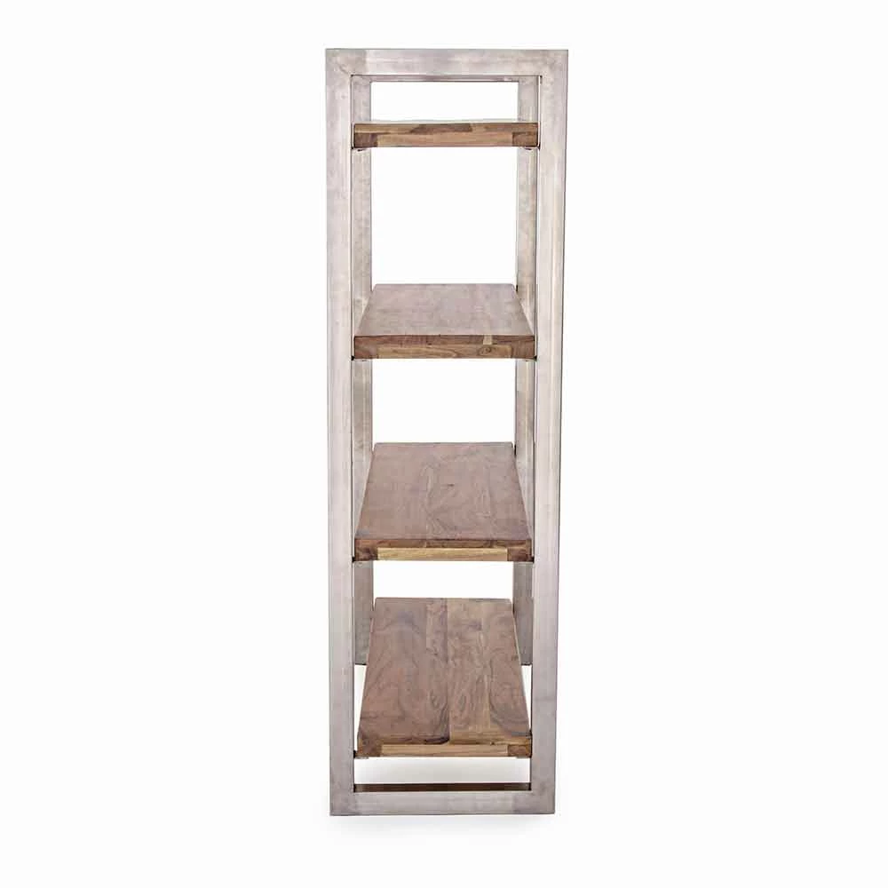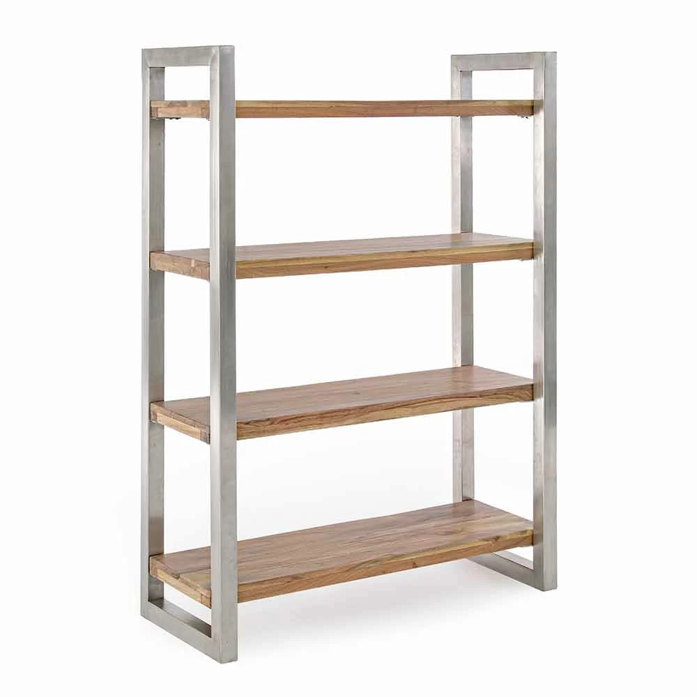 Vloer boekenkast in roestvrij staal en hout, modern design.