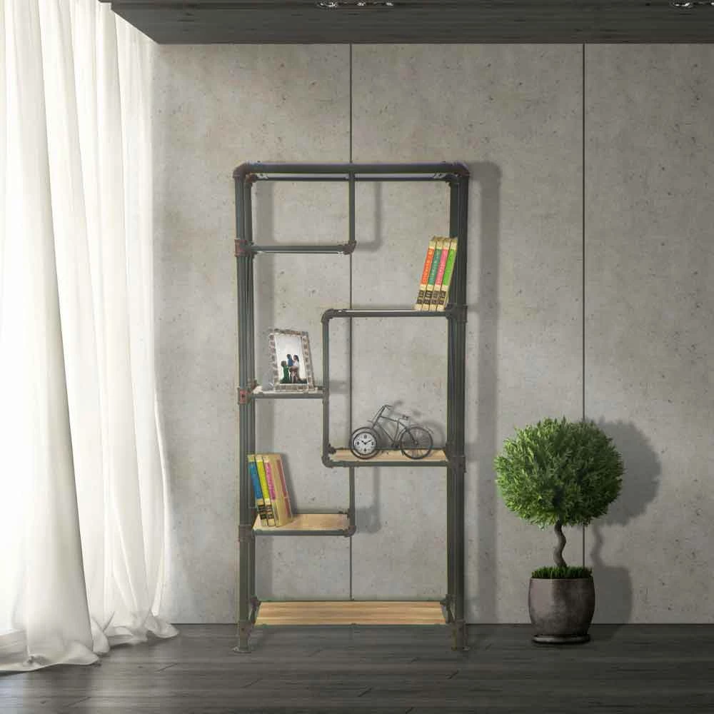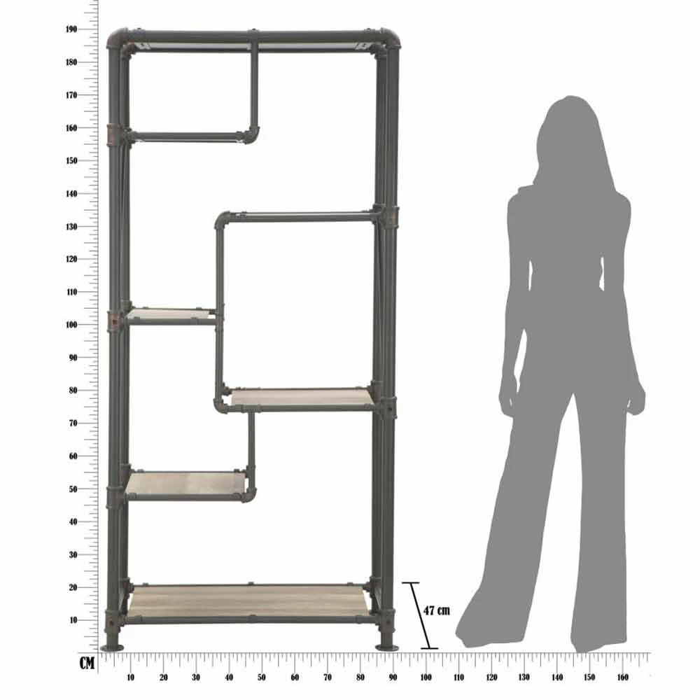 Design vloer boekenkast 93x47x190 cm gemaakt van MDF en metaal.