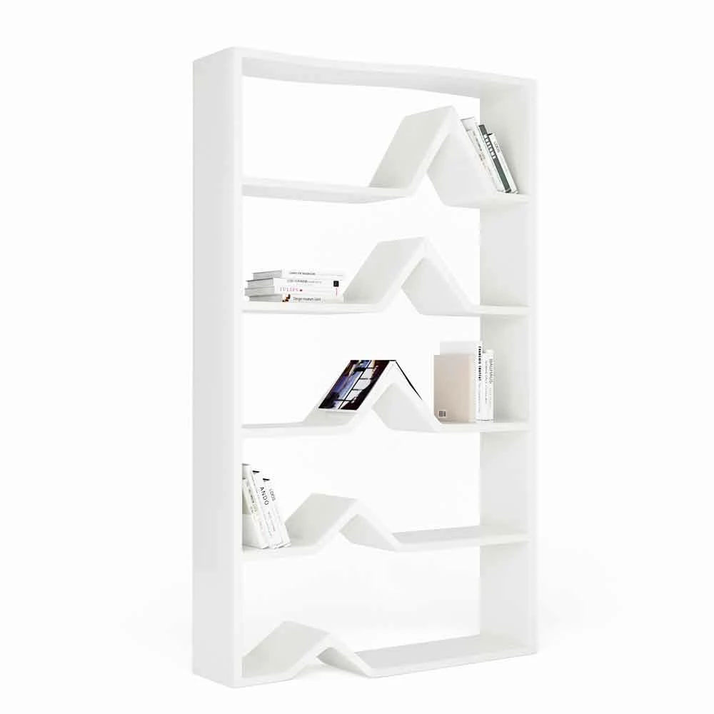 De bibliotheek is geïnspireerd op Darwins theorie van de menselijke evolutie. We hebben gemerkt dat onze houding tijdens het gebruik van een boekenplank de figuur in elk stadium van zijn theorie herinnert. Om dit idee te weerspiegelen, is elke regel in de boekenkast ontworpen om de verschillende stadia van het evolutieproces weer te geven. Structuur gemaakt van Solid Surface, verkrijgbaar in twee kleurvarianten: Wit (RAL9003) of Zwart (RAL9005)