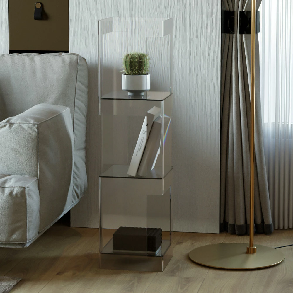 Vrijstaande boekenkast in acrylkristal 2 afwerkingen en 2 maten gemaakt in Italië.