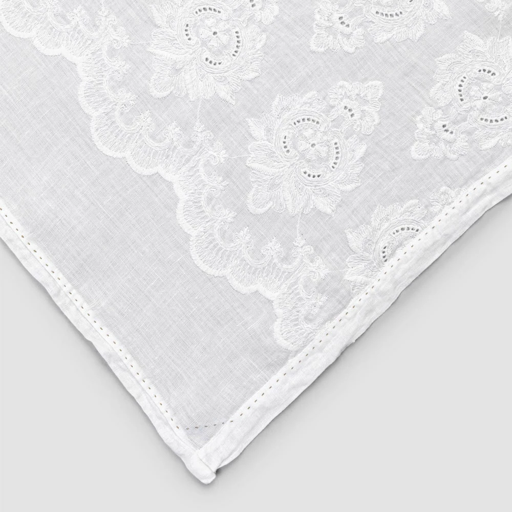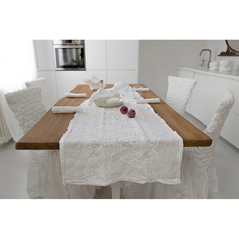 Puur linnen tafelloper met katoenen borduurwerk, luxe elegant ontwerp gemaakt in Italië.