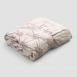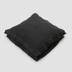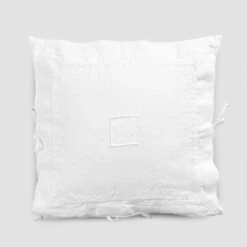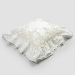 Vierkante Kussensloop Van Wit Linnen Met Decoratief Kant Aan De Randen En Volants – Priscilla