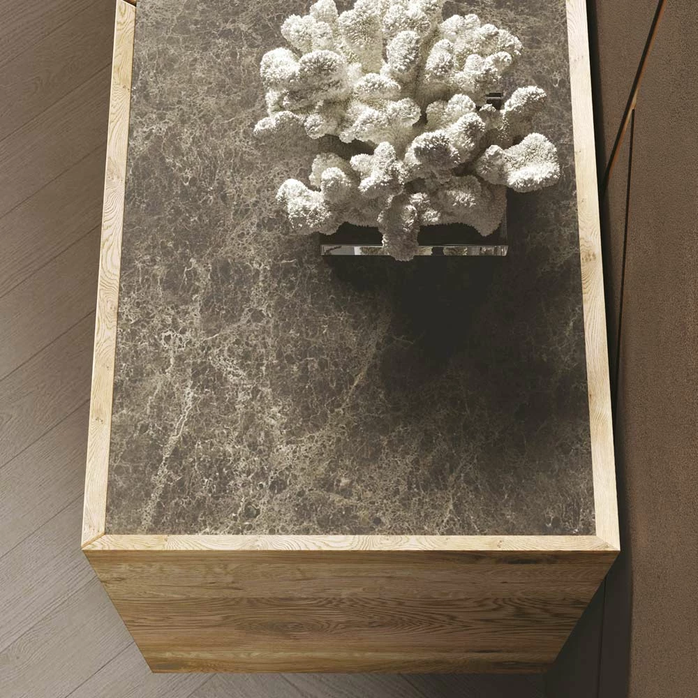 Tv-meubel van hout en onderstel van gehard glas Made in Italy.