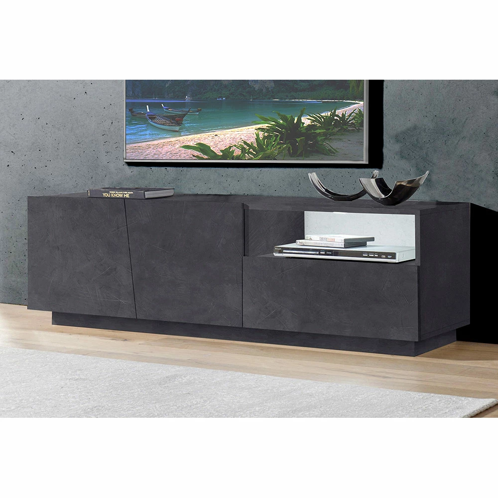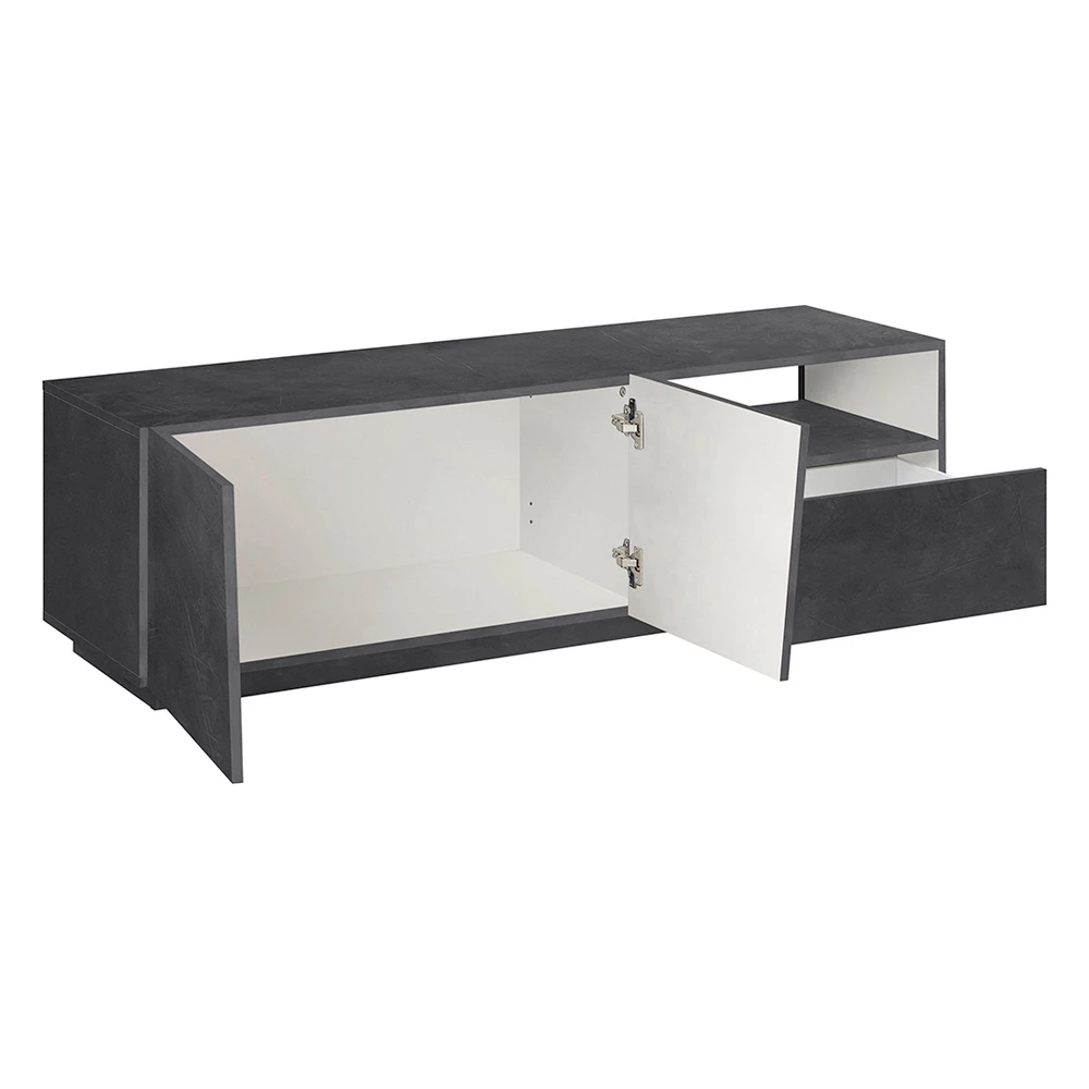 Het tv-meubel bestaat uit 2 draaideuren, een lade en een open vak die veel opbergruimte garanderen. Het is gemaakt van melamine en is 100% Made in Italy . Dit product leent zich uitstekend om de inrichting van elke woonkamer te voltooien dankzij de eenvoudige en elegante afwerkingen die de kamer een uniek en onvergetelijk tintje geven. Het gebruikte materiaal garandeert kwaliteit en duurzaamheid, zelfs in de loop van de tijd.