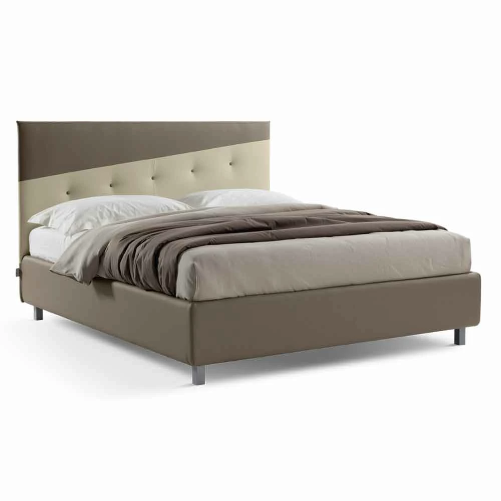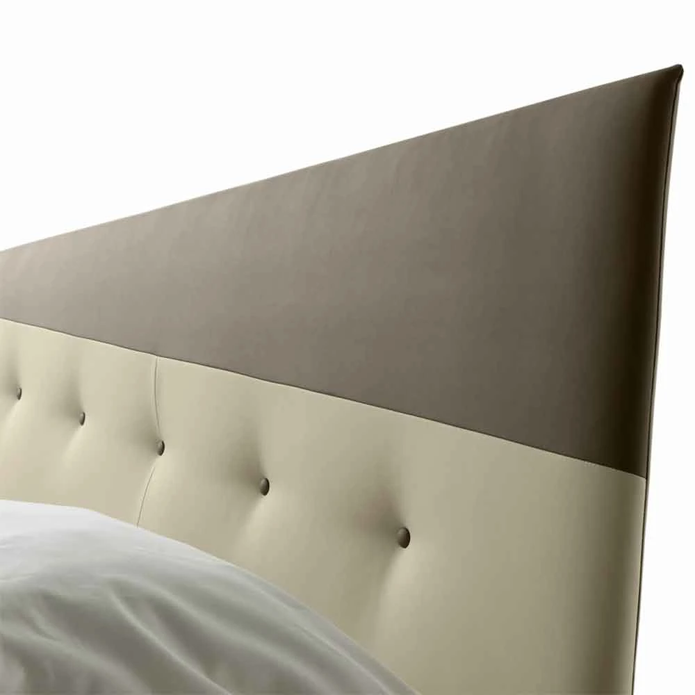 Luxe tweepersoonsbed met opbergdoos, handgemaakt in Italië in tweekleurig eco-leer.