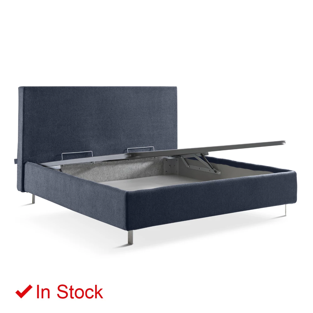 Gestoffeerd tweepersoonsbed met metalen poten en Made in Italy opbergdoos.